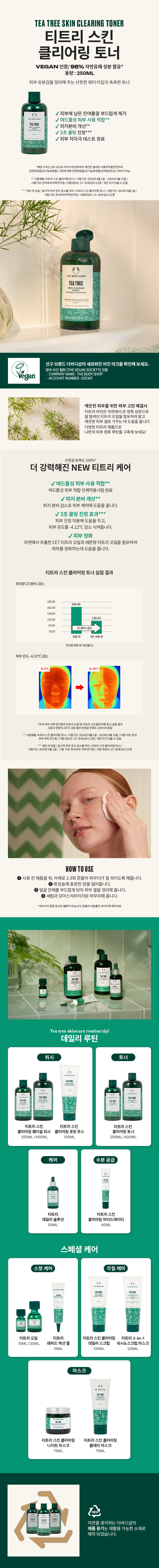 정제수, 변성알코올, 타피오카스타치폴리메칠실세스퀴옥산, 카프릴릴글라이콜, 피이지-40하이드로제네이티드캐스터오일, 버지니아풍년화수, 글리세린, 화이트윌로우껍질추출물, 티트리잎오일, 에탄올, 알란토인, 호동씨오일, 폴리메칠실세스퀴옥산, 시트랄, t-부틸알코올, 리모넨, 소듐하이드록사이드, 시트로넬올, 레몬향티트리오일, 디나토늄벤조에이트, 토코페롤, 황색4호, 카라멜, 청색1호