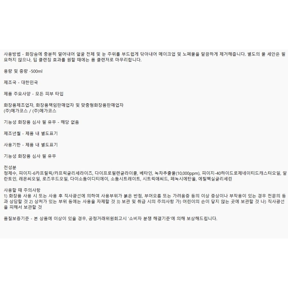 1+1 토니모리 더 촉촉 그린티 노워시 클렌징 워터 500ml