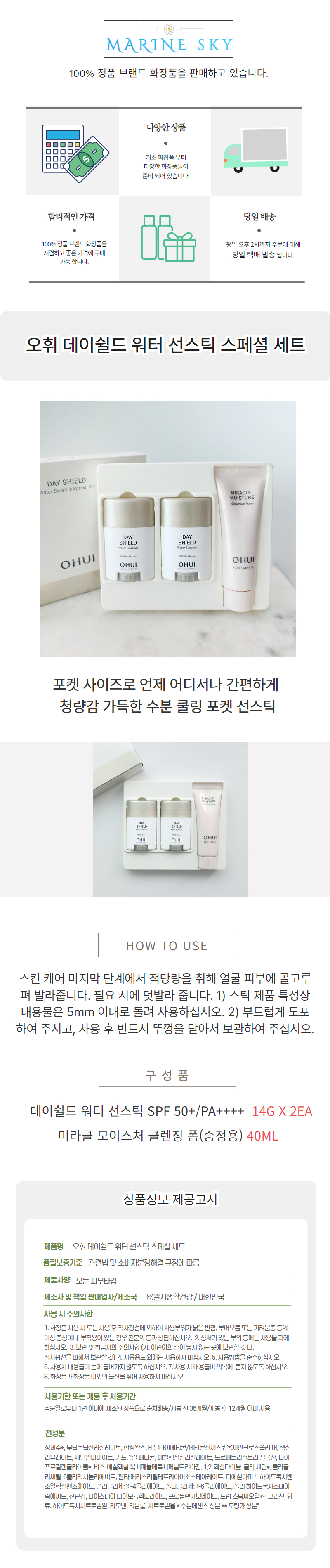 오휘 데이쉴드 워터 선스틱 듀오 스페셜세트