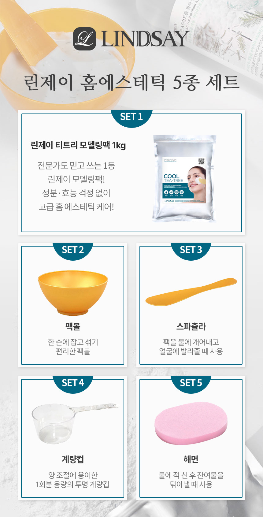 린제이 티트리 모델링팩 1kg+팩도구세트+클렌징해면 스펀지 홈에스테틱 5종세트 쿨링 진정