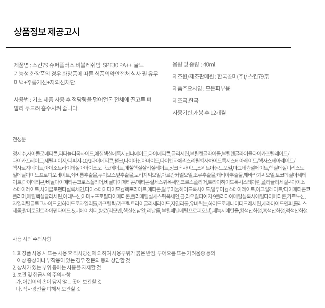 스킨79 슈퍼 플러스 비블레쉬 밤 골드 비비 SPF30+