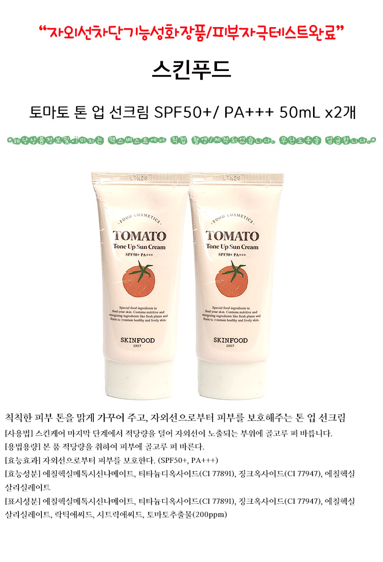 무배 스킨푸드 토마토 톤업 선크림 SPF50+PA+++ 50ml x2개