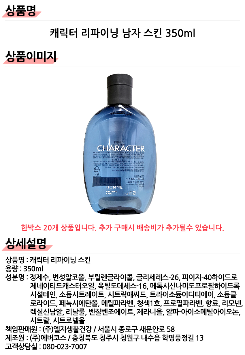 캐릭터 스킨 350ml x 3개 / 리파이닝 보닌 더 화장품 중 프로텍션 남자 스킨로션