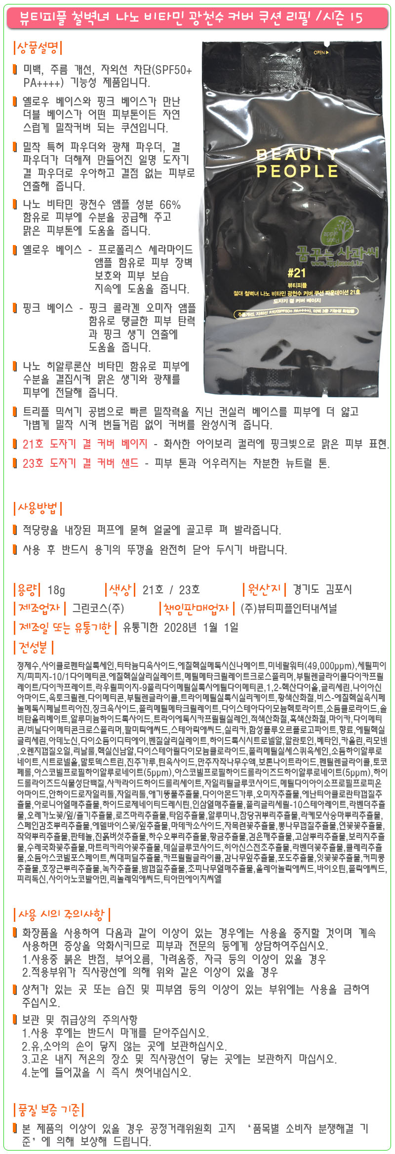 뷰티피플 절대 철벽녀 나노 비타민 광천수 커버 쿠션 리필 / 시즌15