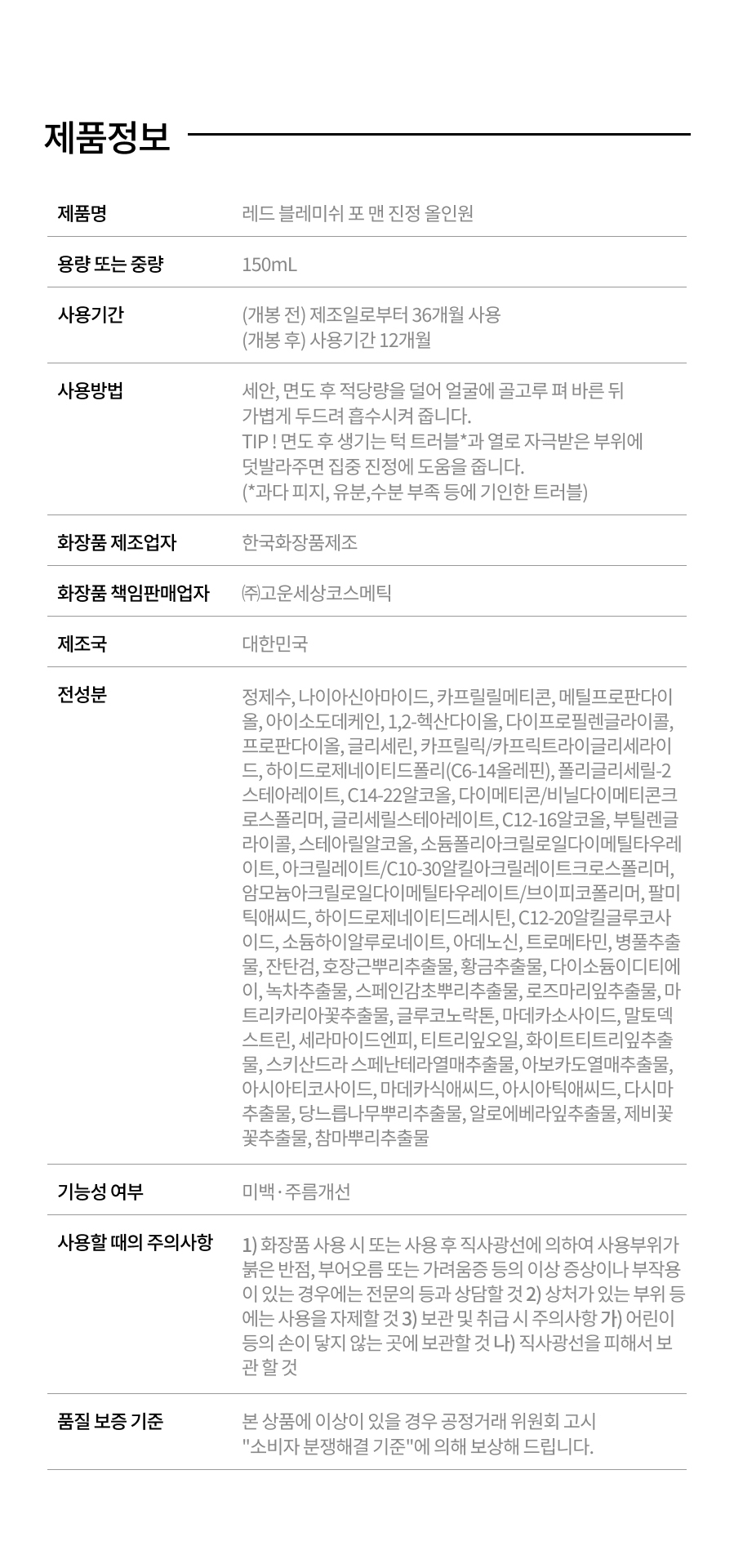닥터지 레드 블레미쉬 포 맨 진정 올인원 150ml