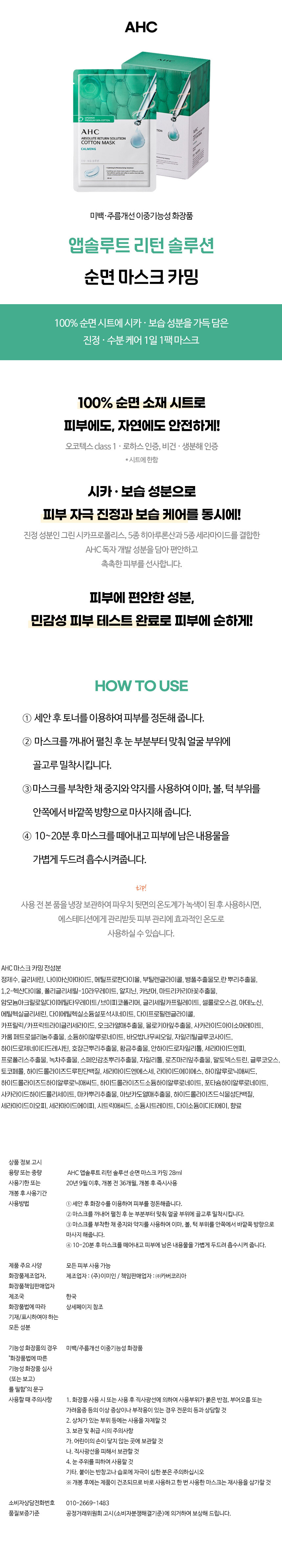 AHC홈쇼핑 동일 AHC 순면 마스크 팩 앱솔루트 리턴 카밍 100매 세트