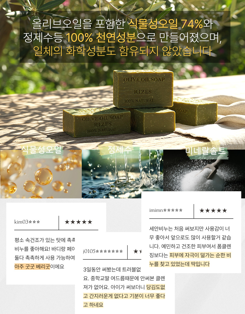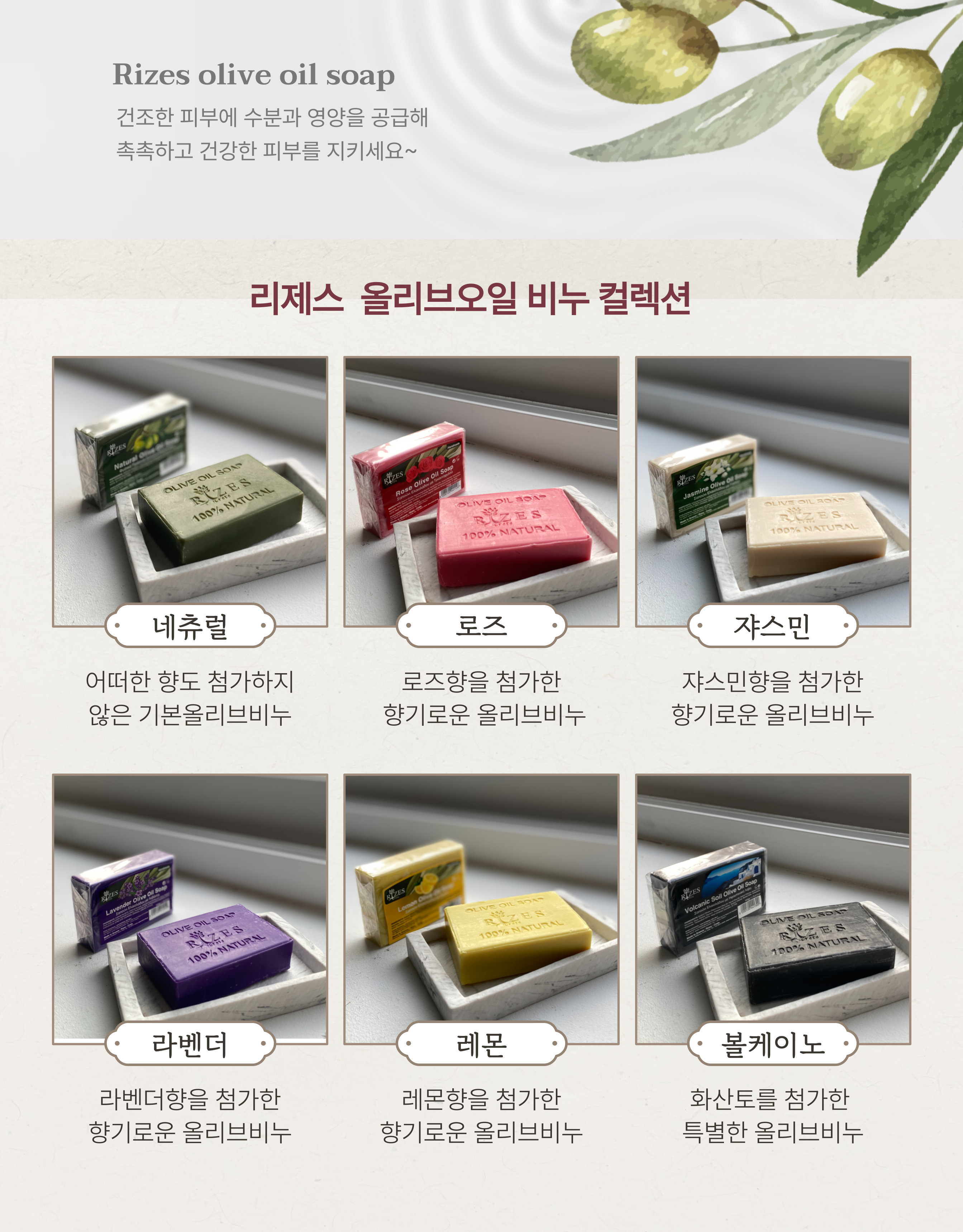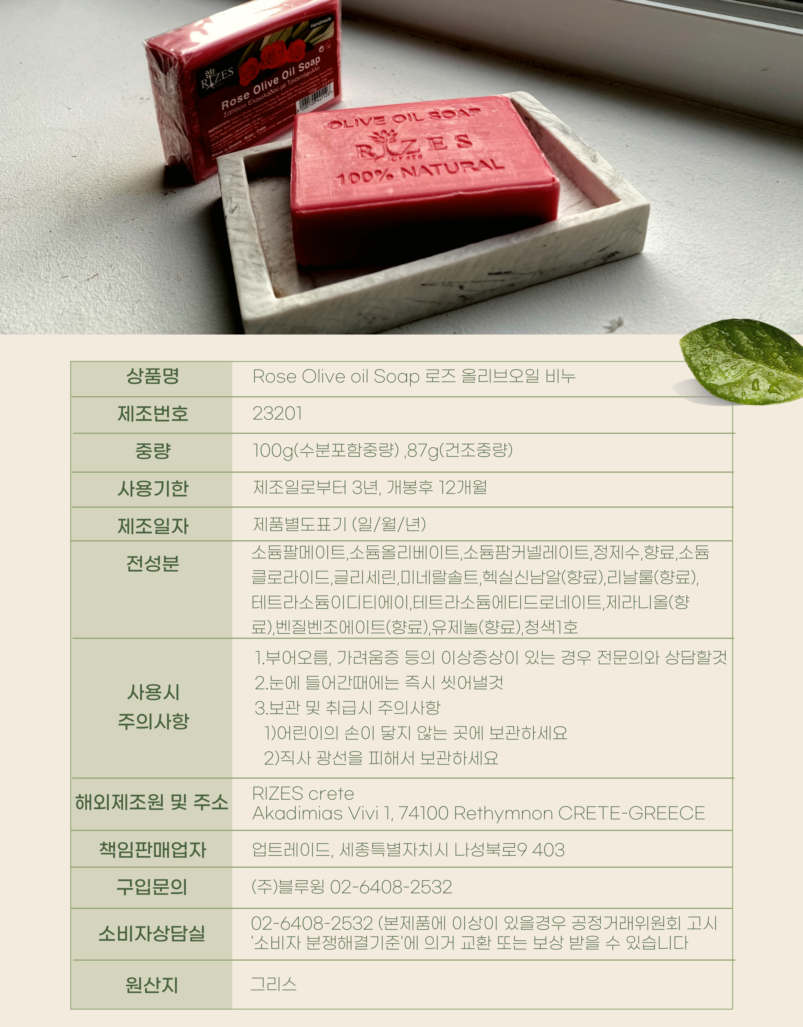 그리스수입 리제스 로즈 올리브비누 세수 세안 천연 보습비누