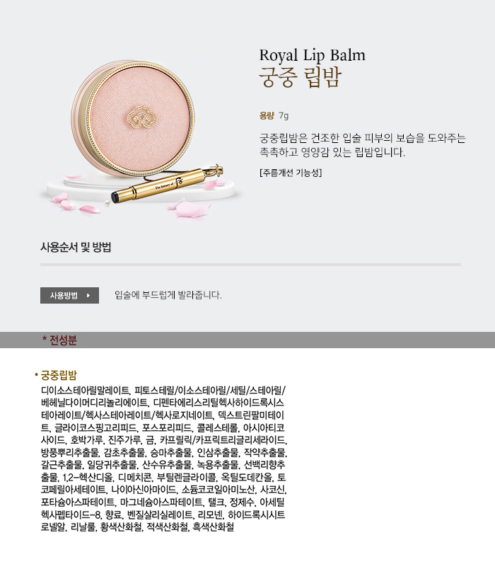 사용방법 : 입술에 적당량 고루 펴 발라 줍니다.