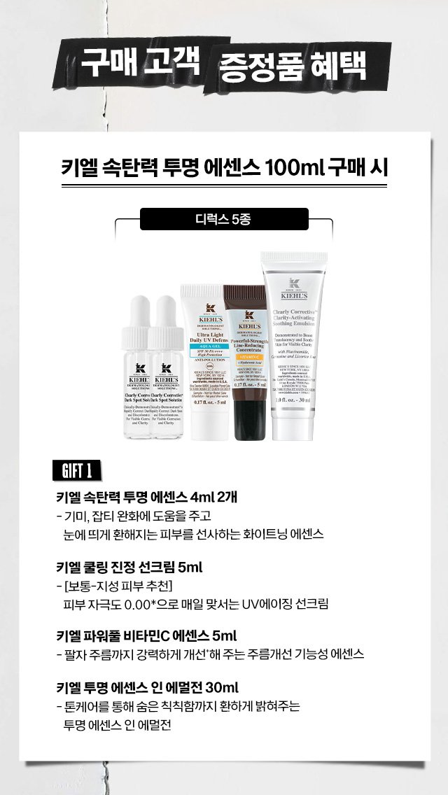 (신세계강남점)11L 키엘 속탄력 투명 에센스 100ml 세트 (+디럭스 5종)