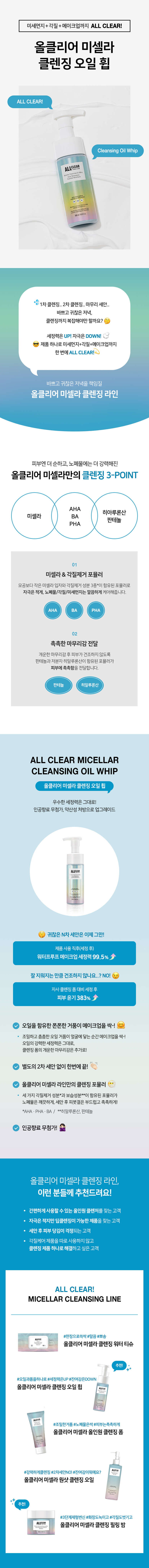 올클리어 미셀라 클렌징 오일 휩 150ml