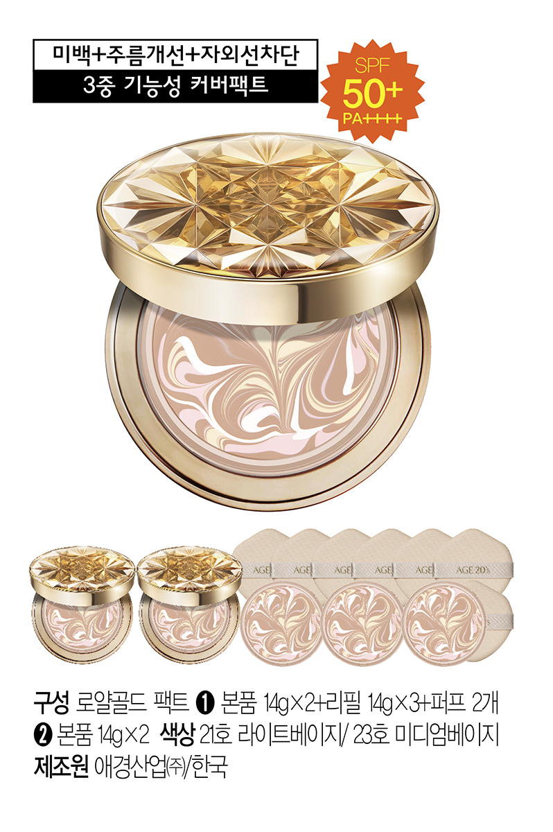 (NS홈쇼핑)에이지투웨니스 에센스 커버팩트 로얄골드 실속구성 (본품 2+리필 3+퍼프 2)..35287150