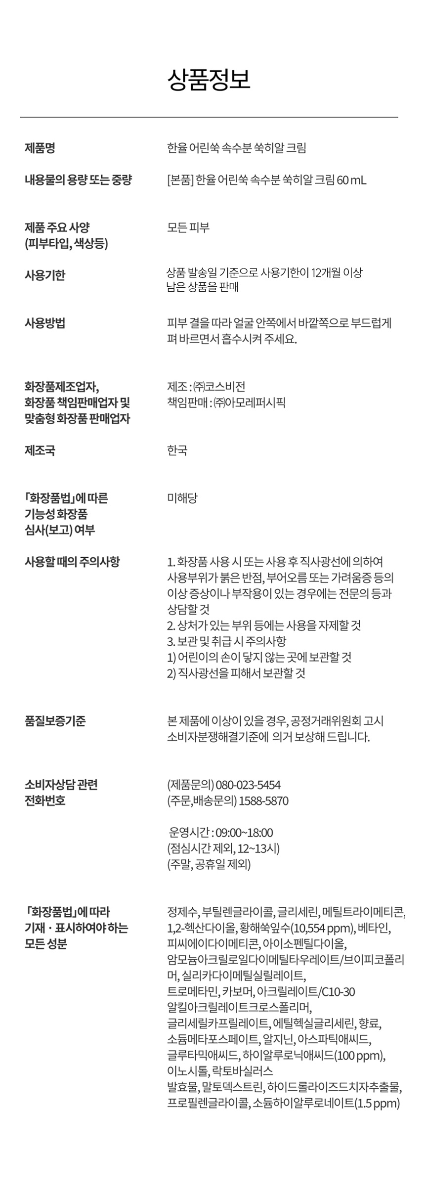 어린쑥 속수분 쑥히알 크림 60ml