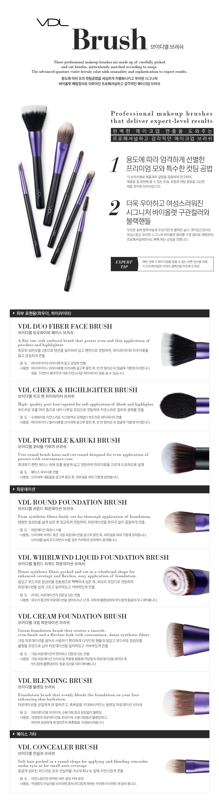 [본품]VDL 듀오화이버 페이스 브러쉬코팅한 듯 균일한 광채 피부 표현