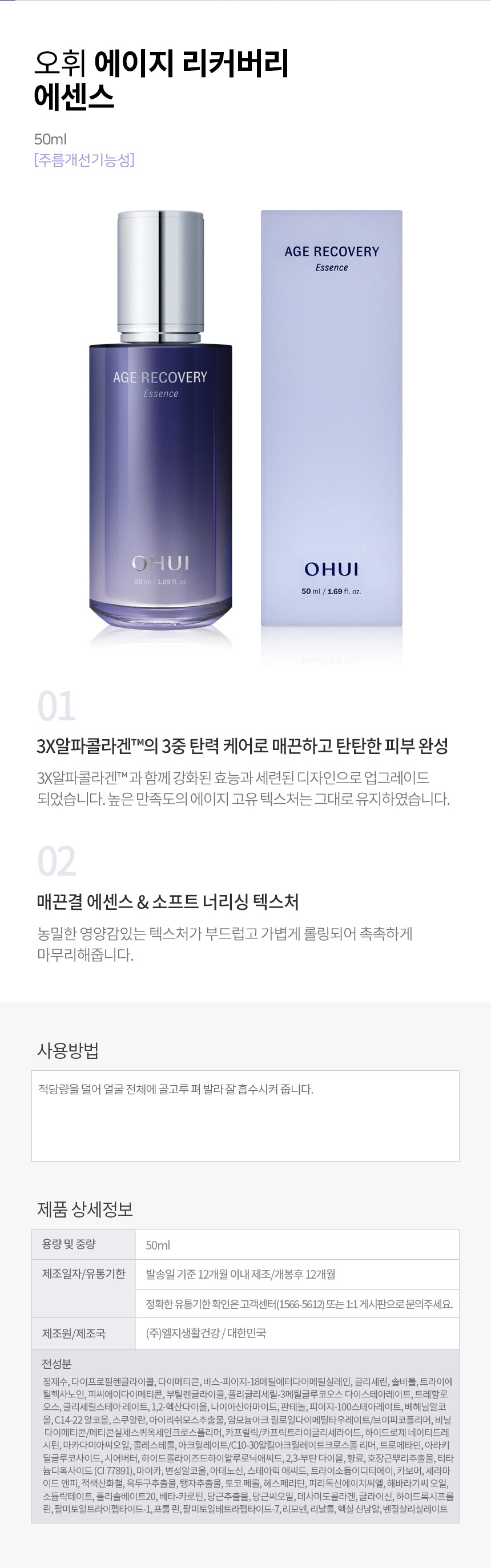 오휘오휘 에이지 리커버리 에센스 50ml 3X알파콜라겐 탄력케어