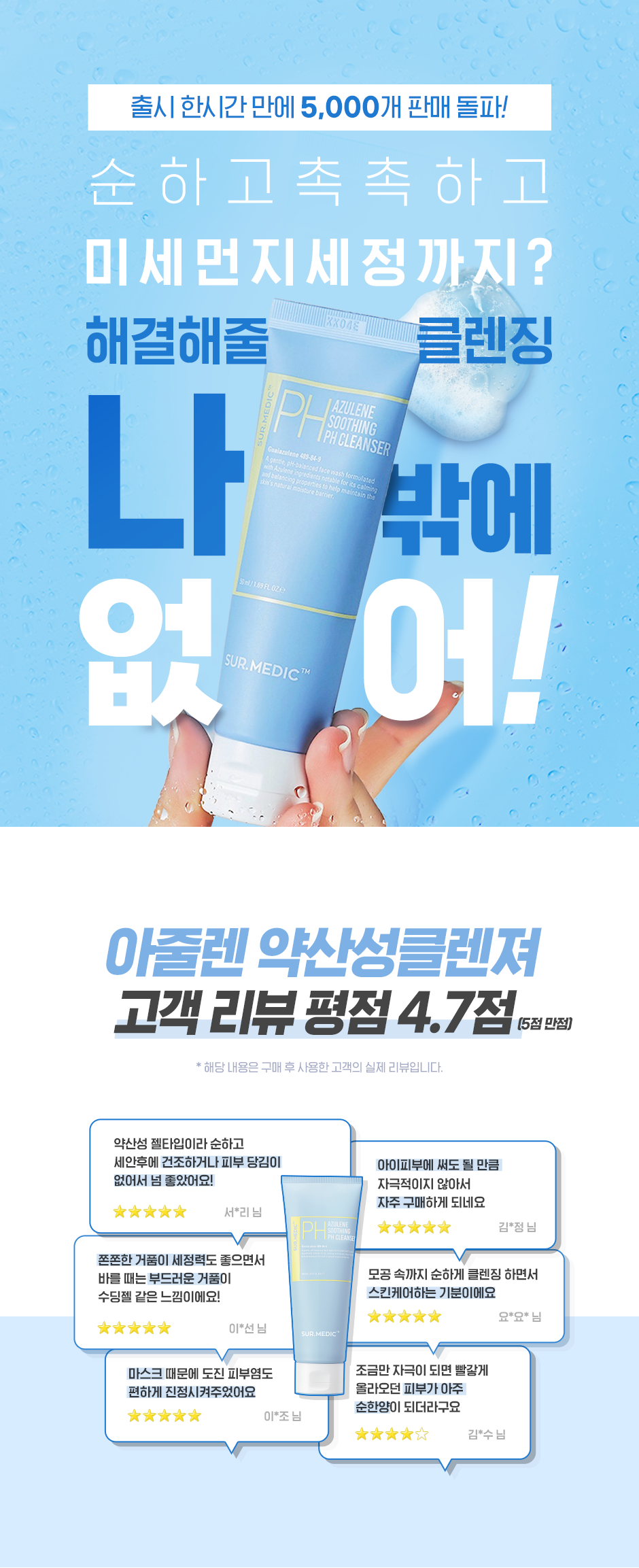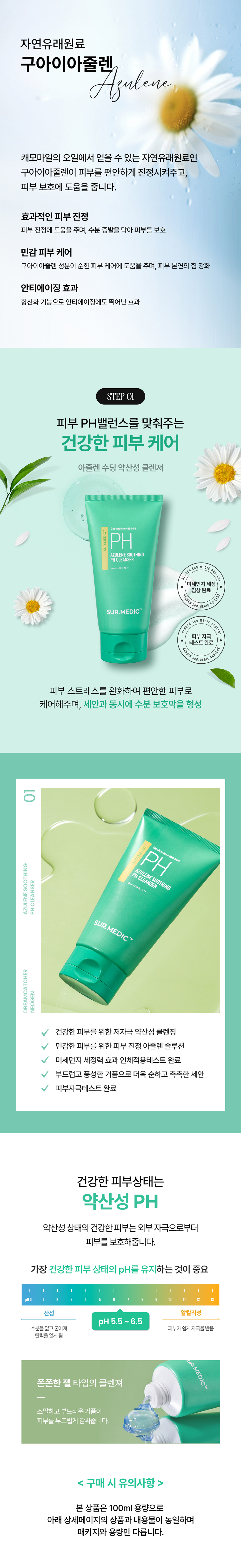 CJ단독대용량 아줄렌 수딩 약산성 클렌져 100ml5+아줄렌진정수분크림30ml