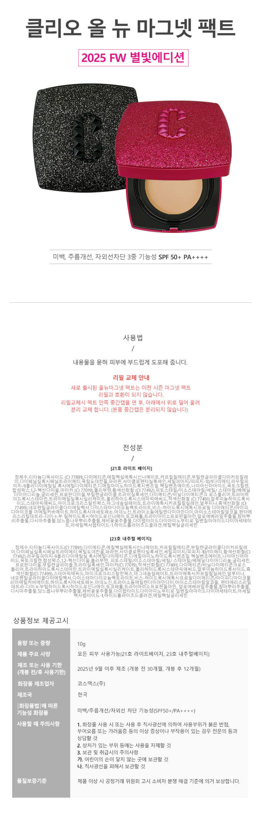 | 화장품법에 따라 기재, 표시하여야 하는 모든 성분 | 상세페이지 참조 |