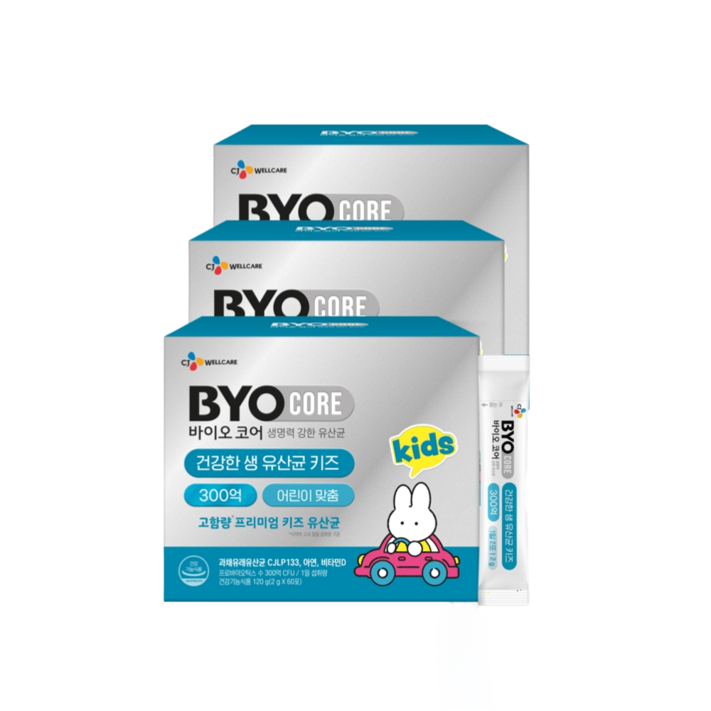 CJ 바이오코어 건강한 생 유산균 키즈 300억 60포 3박스 3개월 피부면역