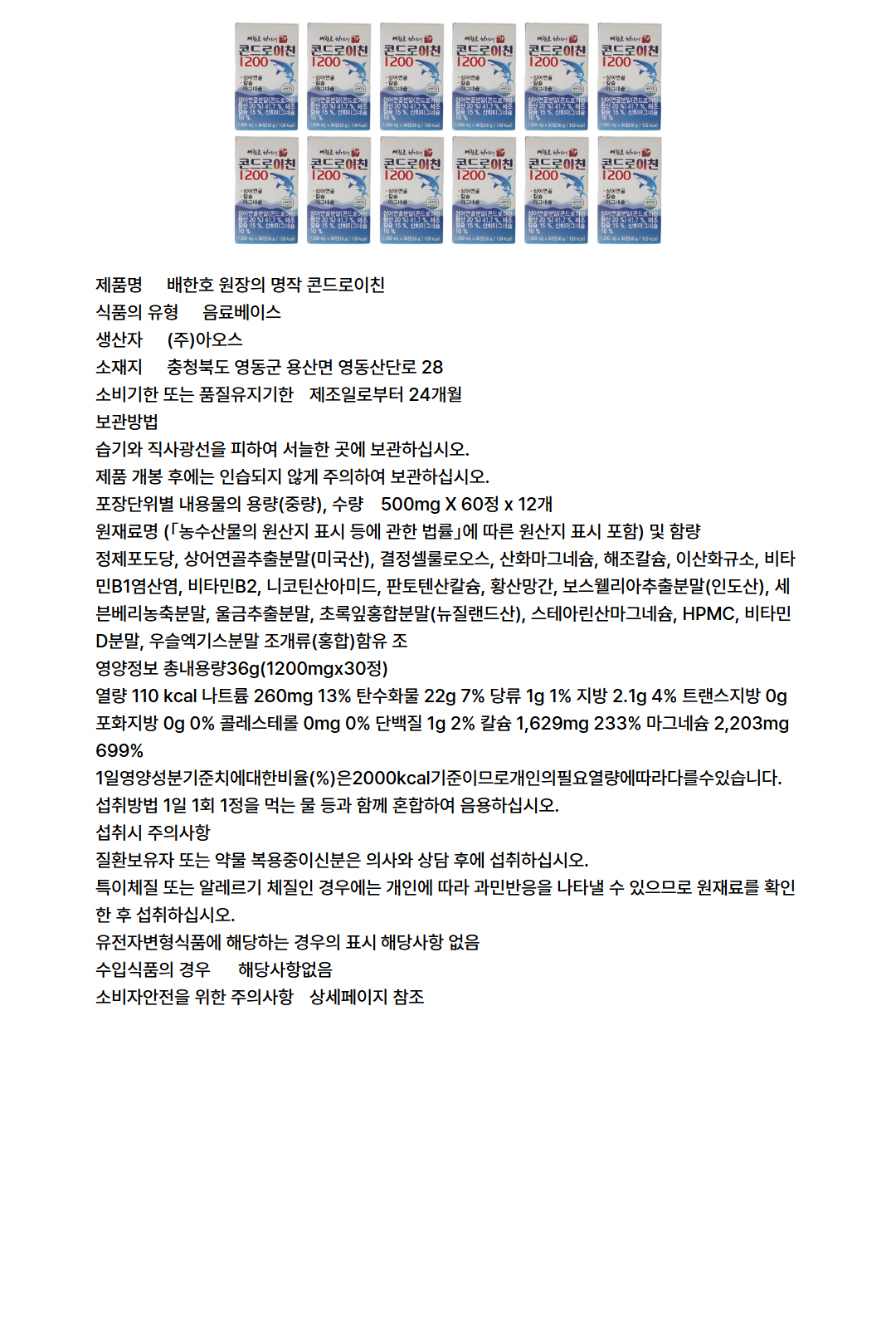 배한호 원장의 명작 콘드로이친 1200 30정 12개