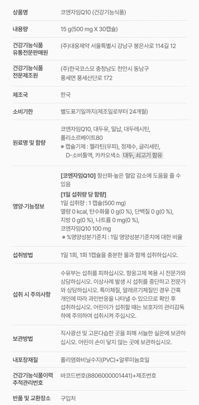 대웅제약 코엔자임 Q10 30캡슐 (30일분)황산화 혈압 감소 코엔자임Q10 100mg