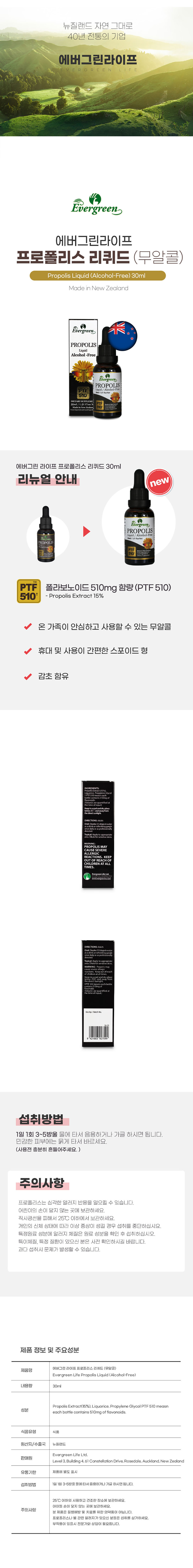 (2병) 뉴질랜드 에버그린 프로폴리스 리퀴드 무알콜 30ml 플라보노이드510mg 페네틸에스테르 루틴