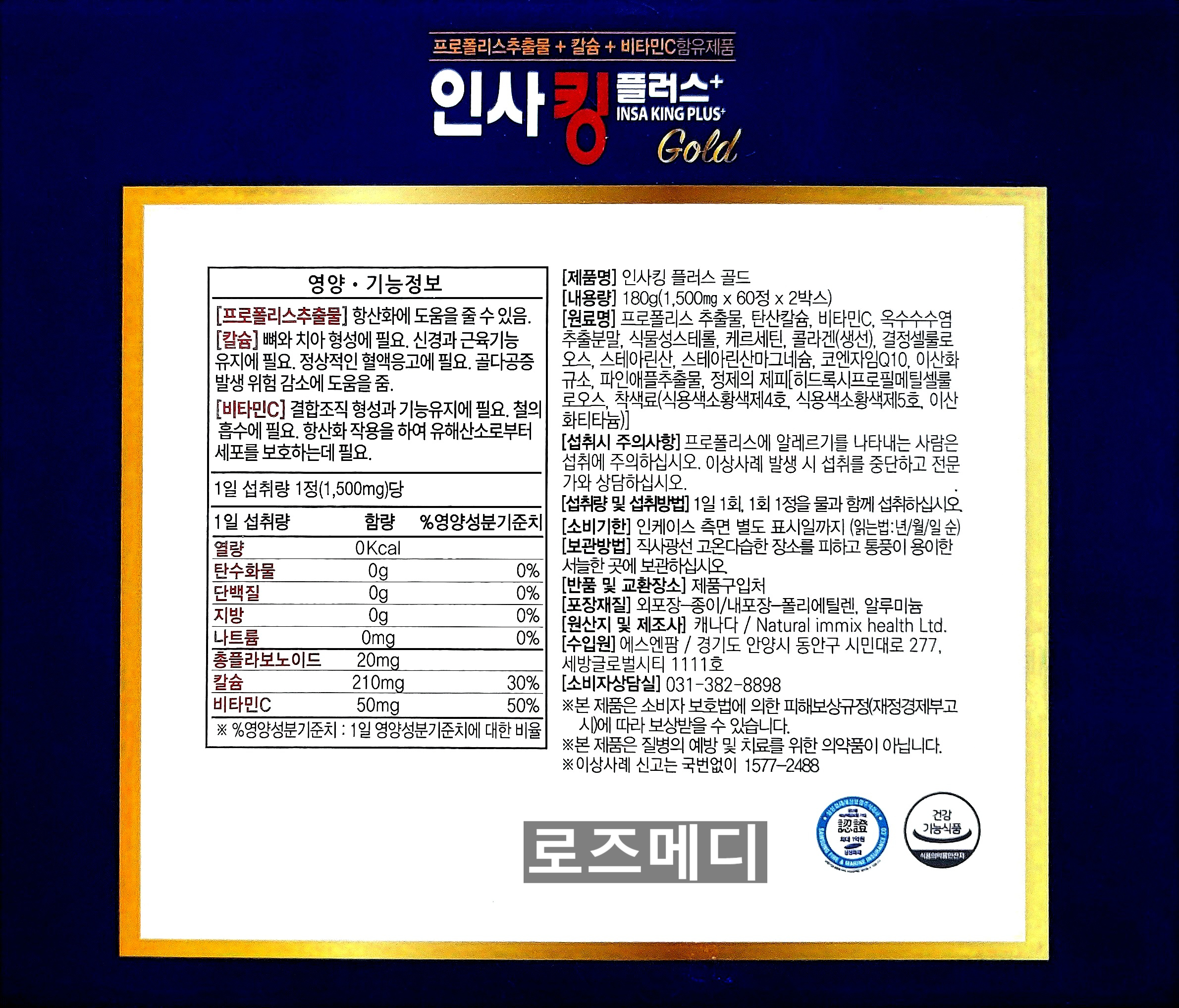 인사킹 플러스 골드 4개월분120정 하루 1정 프로폴리스 콘실크 잇몸영양제