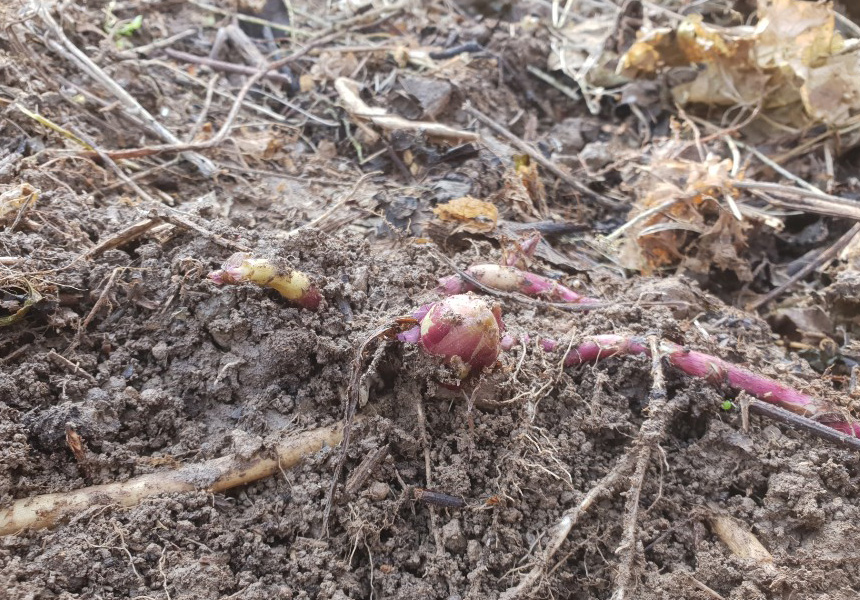 머위잎이 시들고 흙을 살살 긁으면 머위뿌리를 수확할 수 있습니다.