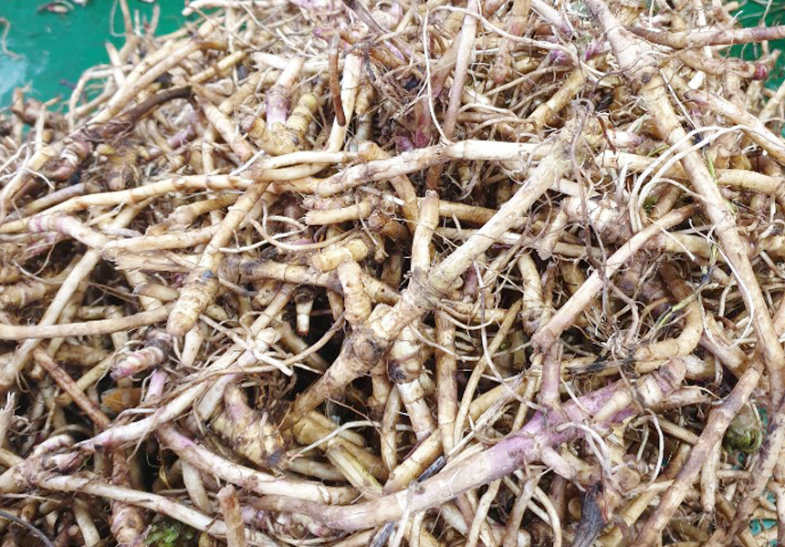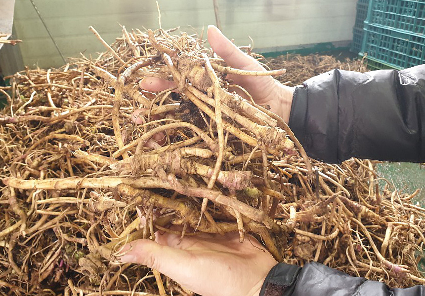 수확한 머위 뿌리를 깨끗하게 세척하고 건조하여 보관합니다.