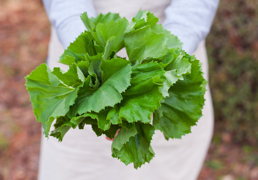 겨울에 혹독한 추위를 견디며 자란 야생 머위를 수확합니다.
