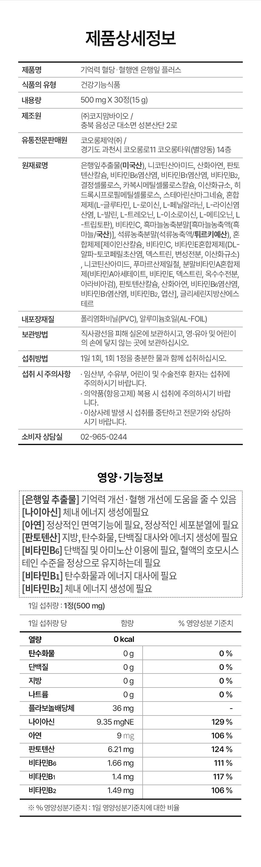 기억력 혈행개선 징코 플러스 뇌 은행잎추출물 5박스 메모리 두뇌 징코빌로바 은행추출물 플라보놀배당체