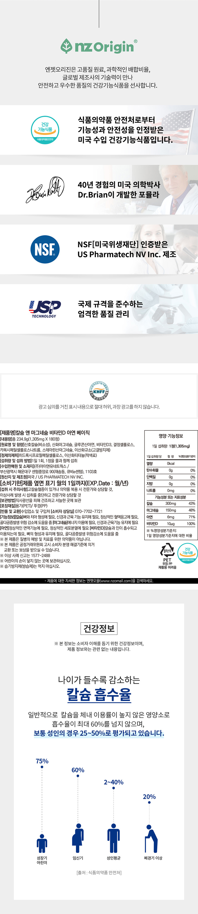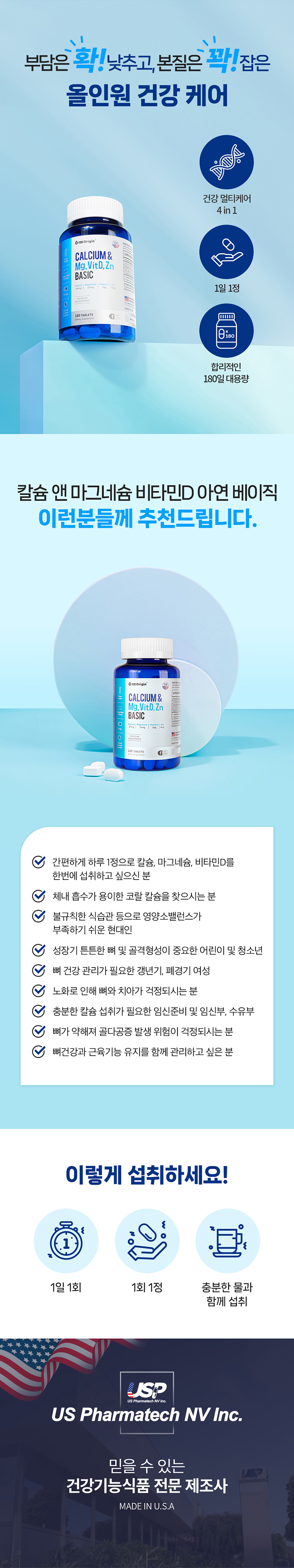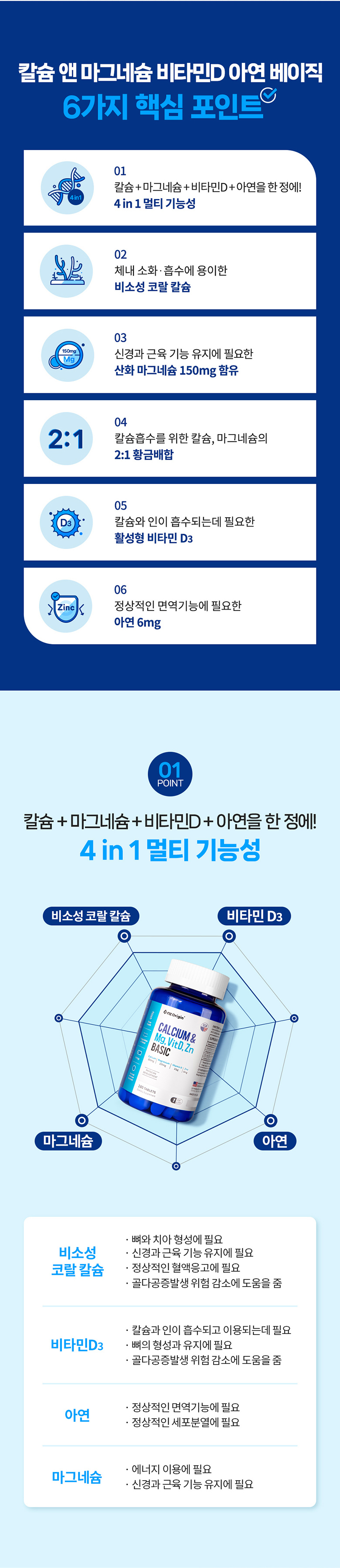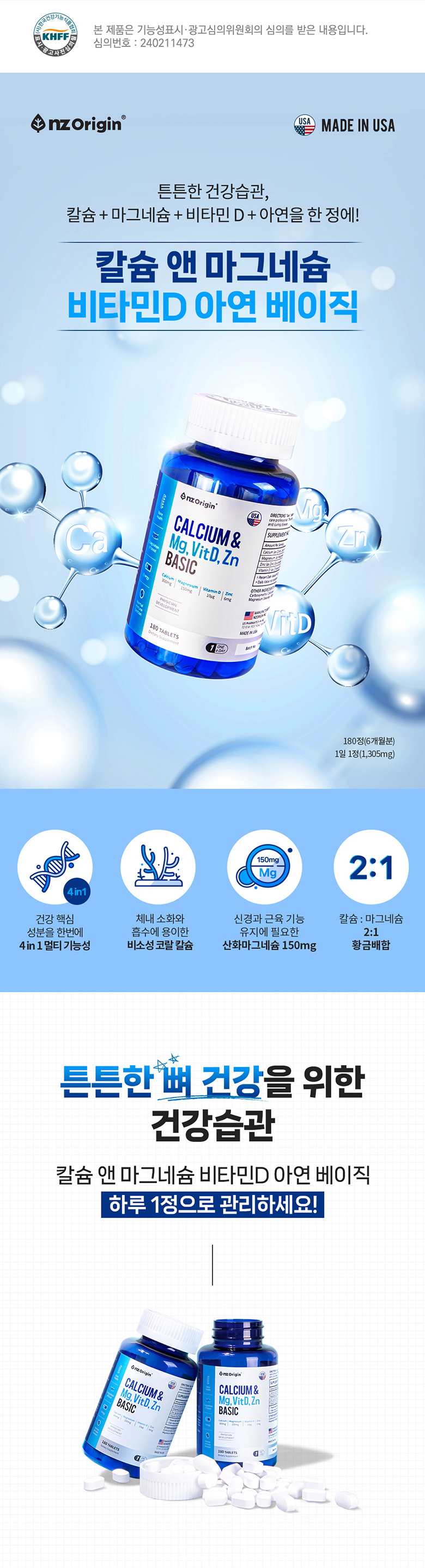 엔젯오리진 칼슘 앤 마그네슘 비타민D 아연 베이직(180정) 6개월분 X 1통