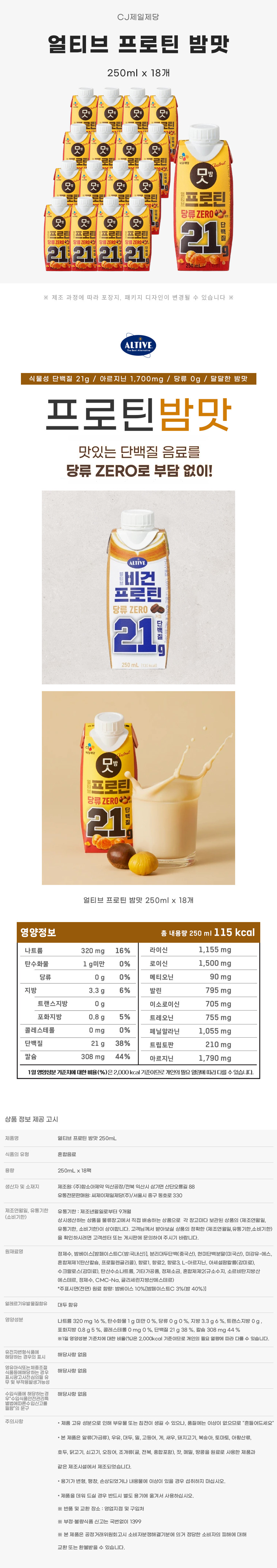 얼티브 프로틴 밤맛 250ml x18개