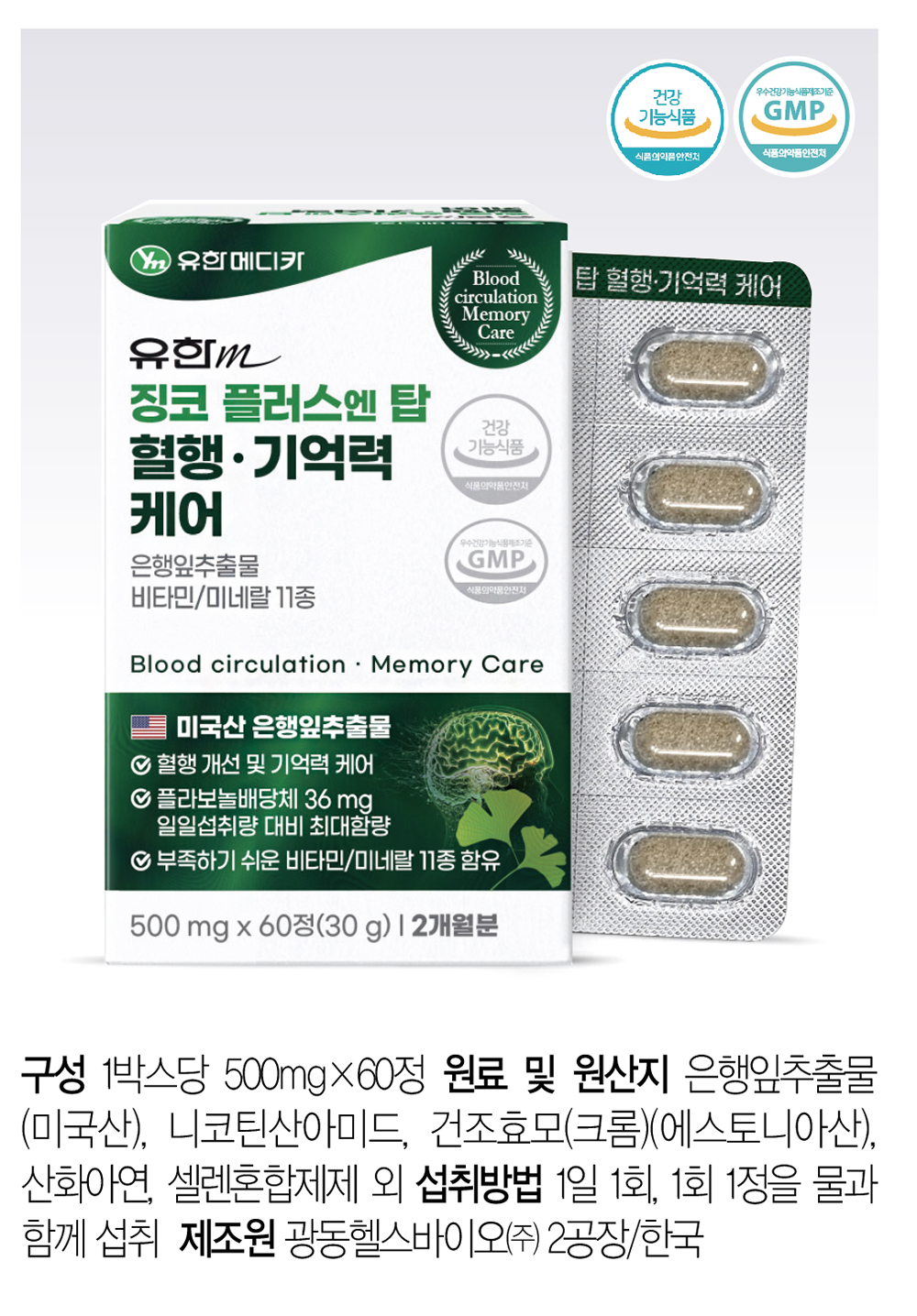 유한메디카 징코 플러스 엔 탑 혈행 기억력 케어 2박스(4개월분)..34862747