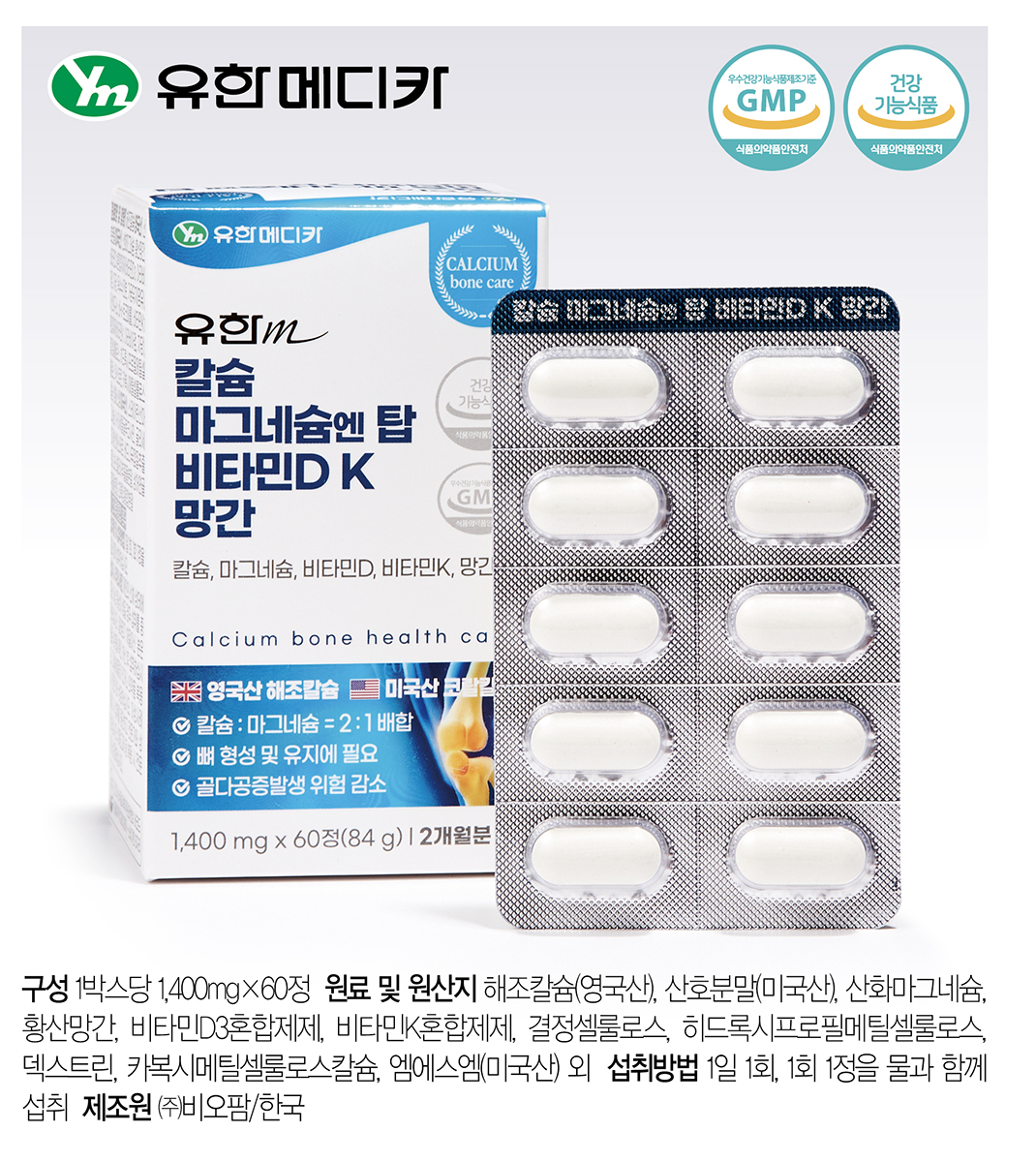 [유한메디카] 칼슘 마그네슘 엔 탑 비타민D K 망간 2박스(4개월분)