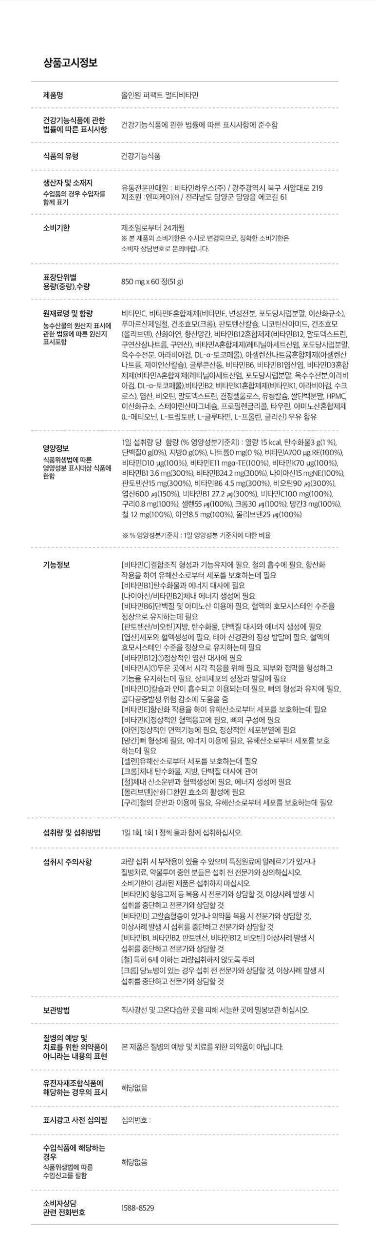 비타민하우스 올인원 퍼펙트 멀티비타민 1박스35144246