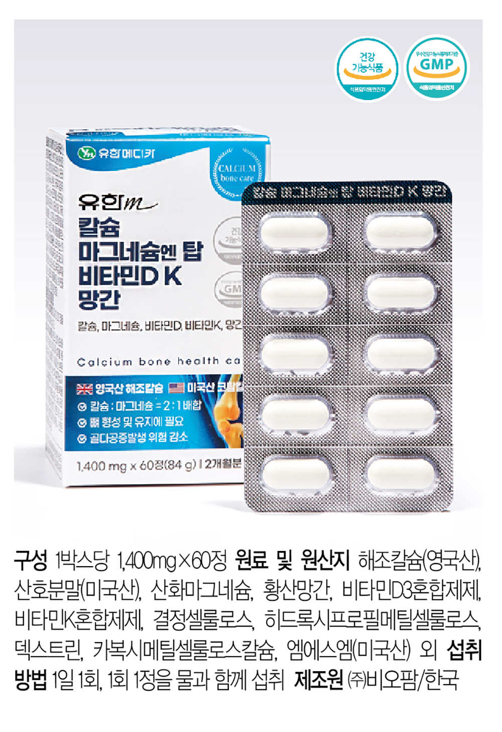 [유한메디카] 칼슘 마그네슘 엔 탑 비타민D K 망간 2박스(4개월분)