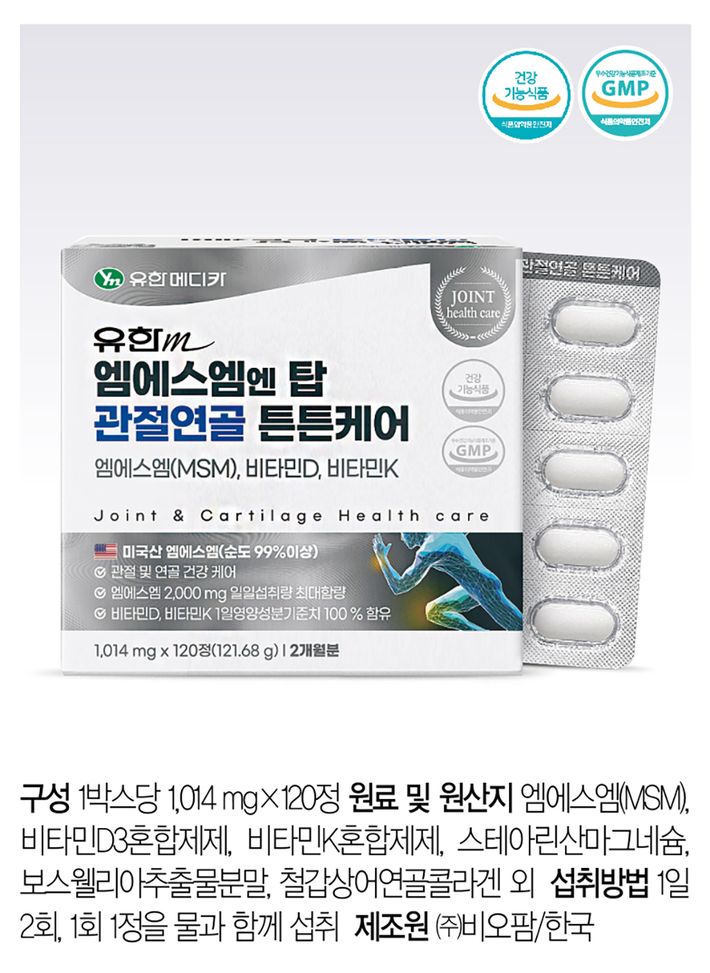 [유한메디카] 엠에스엠 엔 탑 관절연골 튼튼케어 2박스(4개월분)