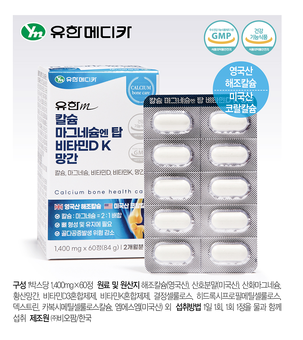 [유한메디카] 칼슘 마그네슘 엔 탑 비타민D K 망간 4박스(8개월분)