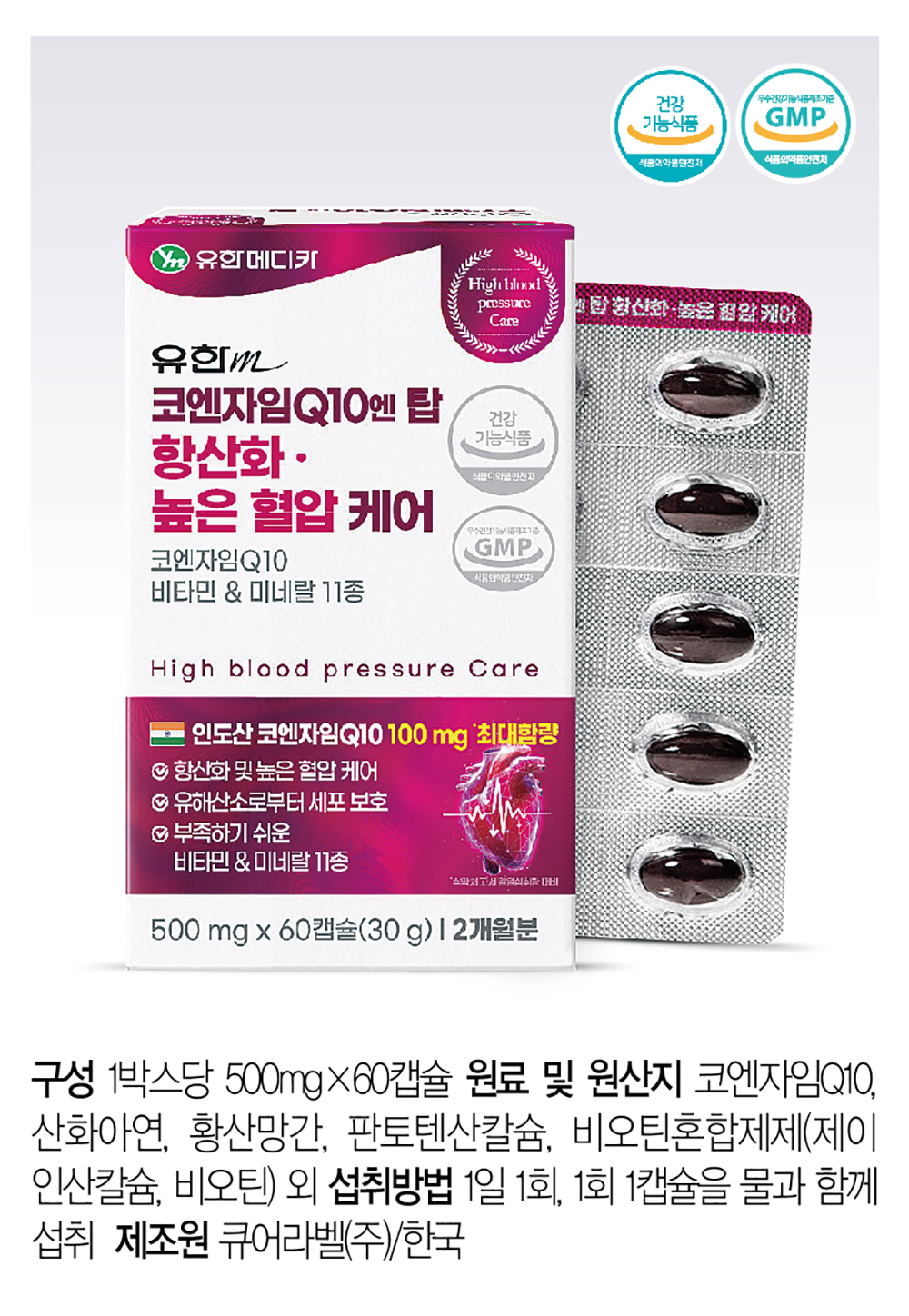 [유한메디카] 코엔자임Q10엔 탑 항산화 높은 혈압 케어 4박스(8개월분)