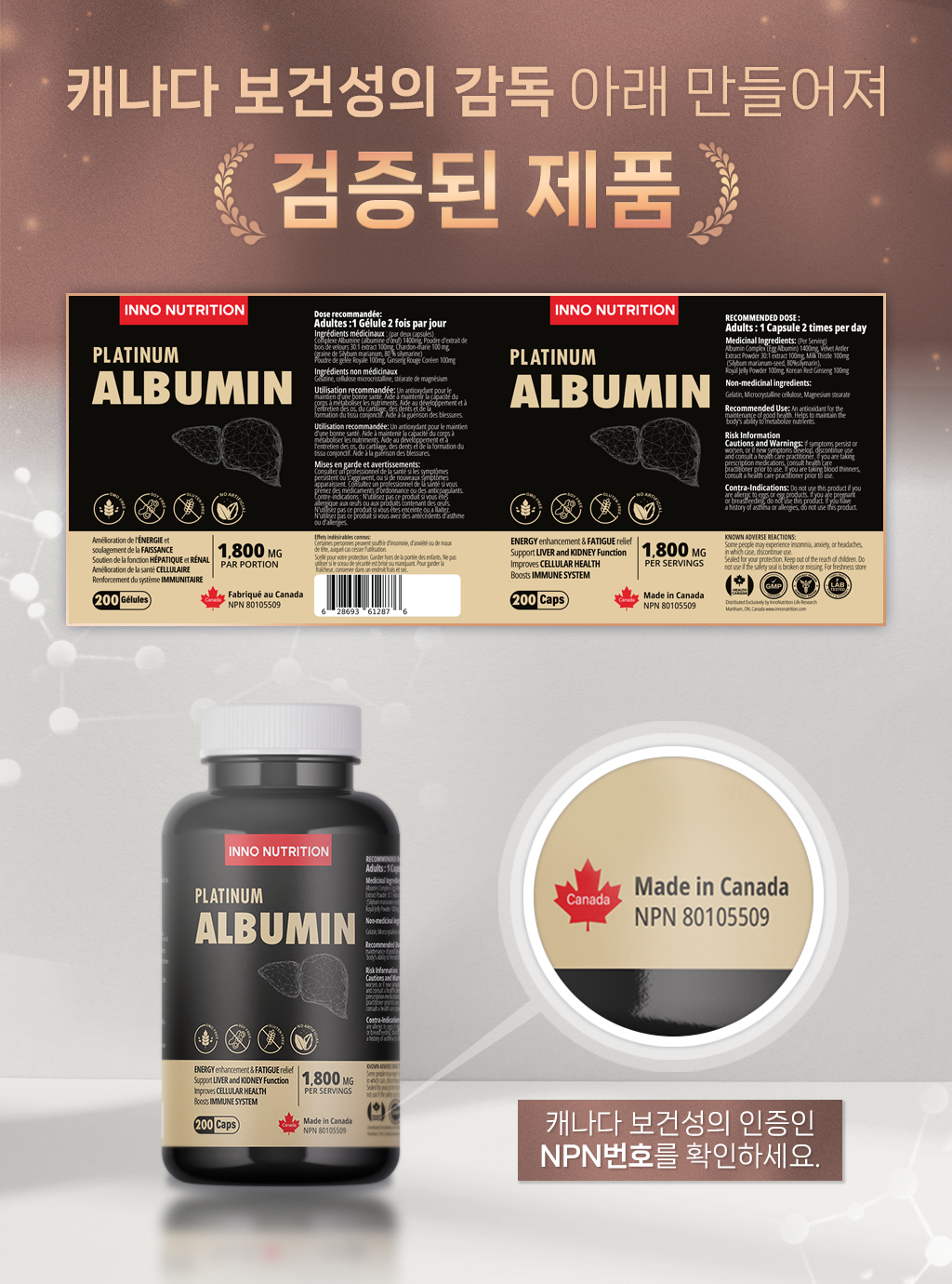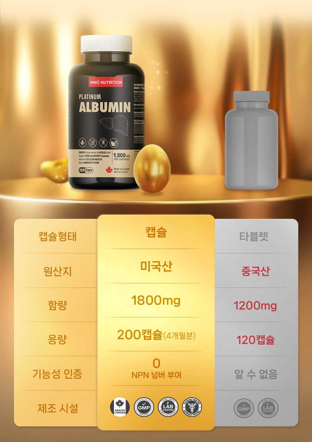 캐나다 알부민 골드 1800mg 200캡슐 2병 알부민효능 영양제