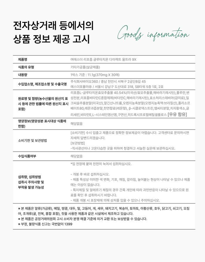 상품명  여에스더 리포좀 글루타치온 다이렉트 울트라 9X 370mg 30매 5박스 /wb / 5박스