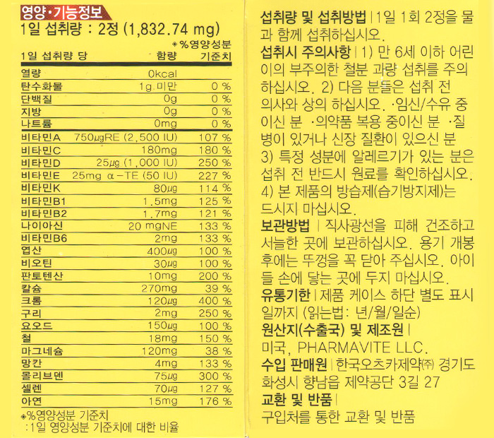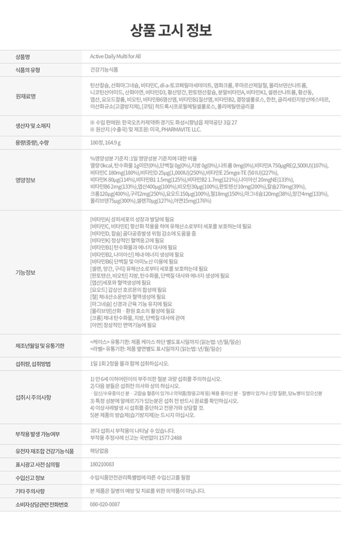 (현대Hmall)네이처메이드 액티브 데일리 멀티 포 올 (180정/90일분)