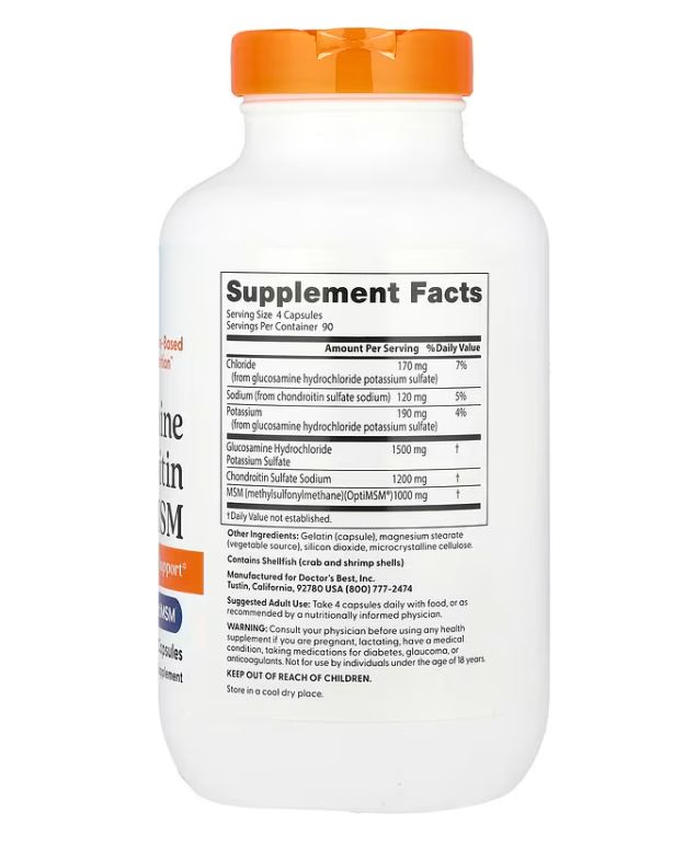 글루코사민과 콘드로이틴, MSM이 함유된 식이 보충제입니다.
