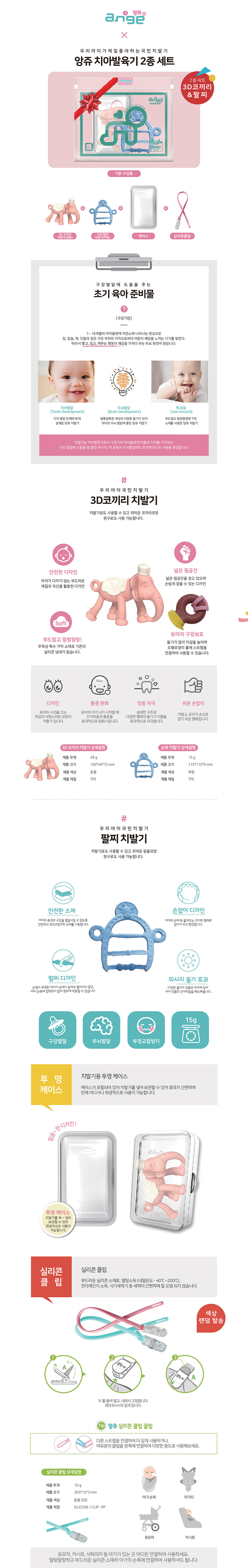 보리보리/앙쥬 치발기 2종세트_3D코끼리(분홍)+기린팔찌(파랑)