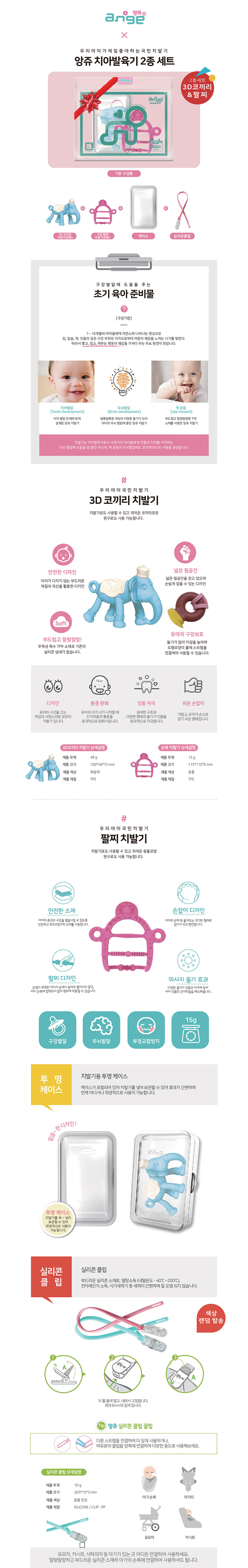 보리보리/앙쥬 치발기 2종세트_3D코끼리(파랑)+기린팔찌(분훙)