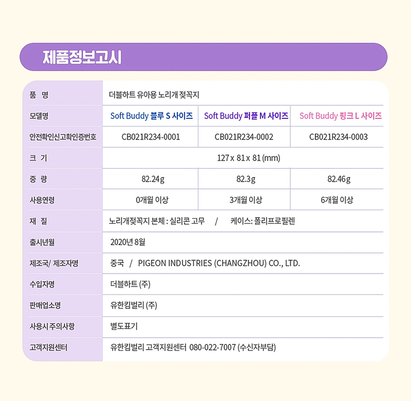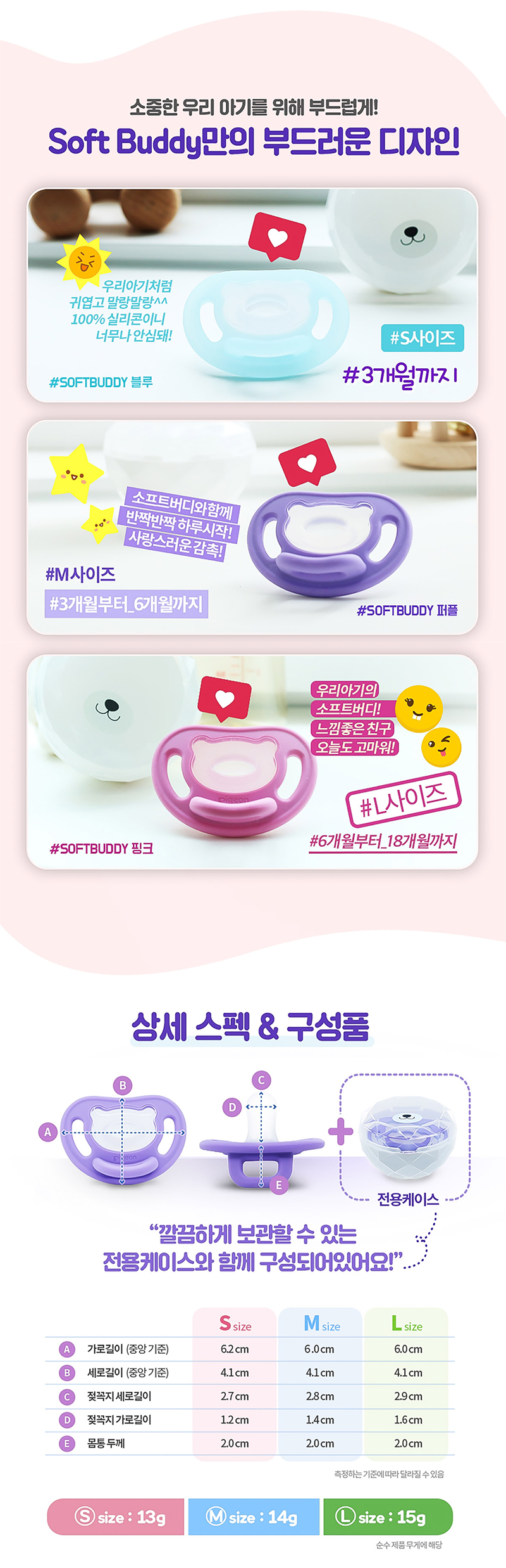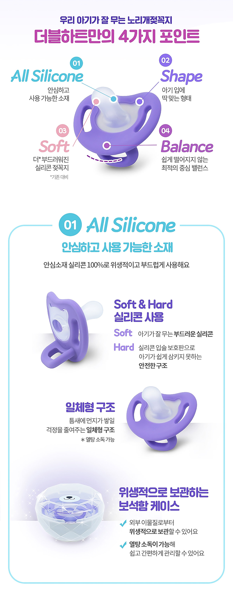보리보리/더블하트 소프트 버디/노리개 공갈 젖꼭지/쪽쪽이/SML/1