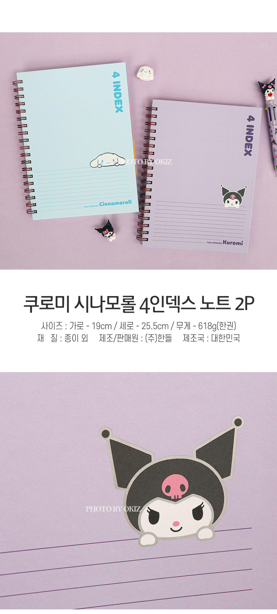 오키즈쿠로미 노트-시나모롤 4인덱스 2P (S0045)