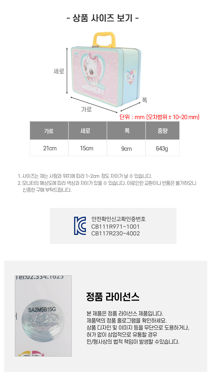 특이 사항  배송, 변경, 반품 환불에 대한 문의는 위 연락처로 문의 주세요.
