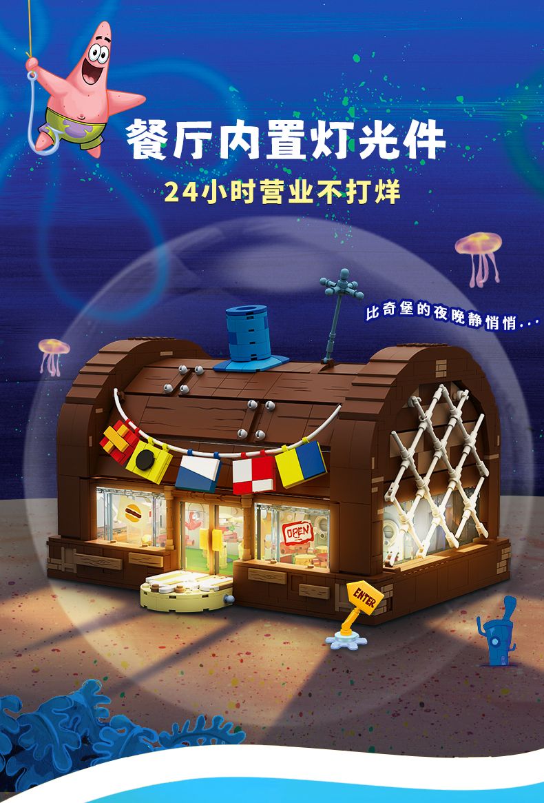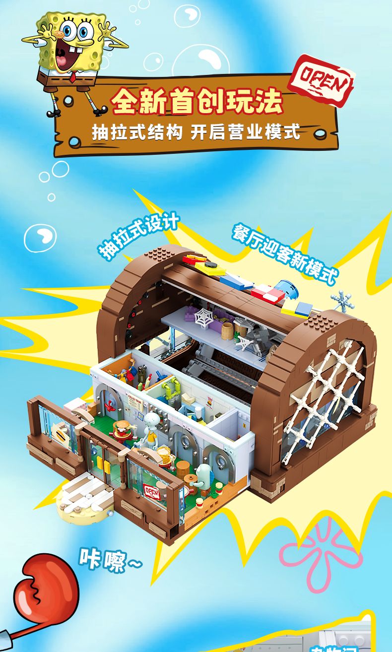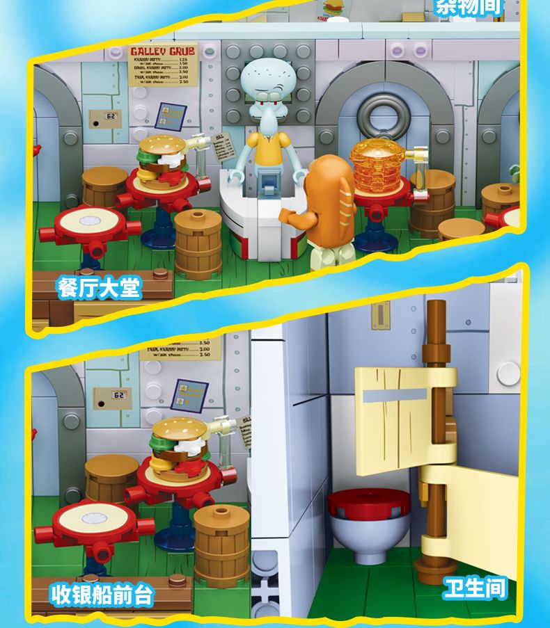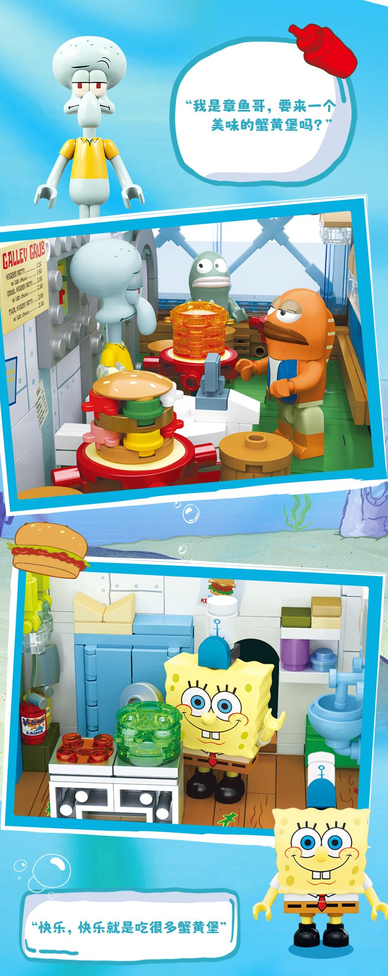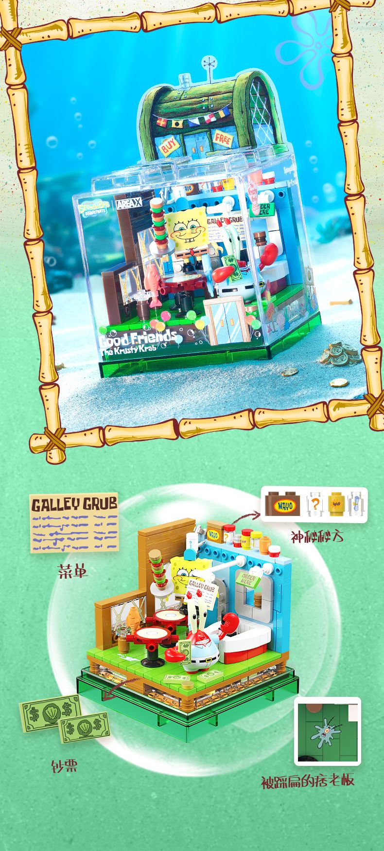 AREAX 네모바지 스폰지밥 집게사장 레스토랑 고품질 중국레고 조립 블럭