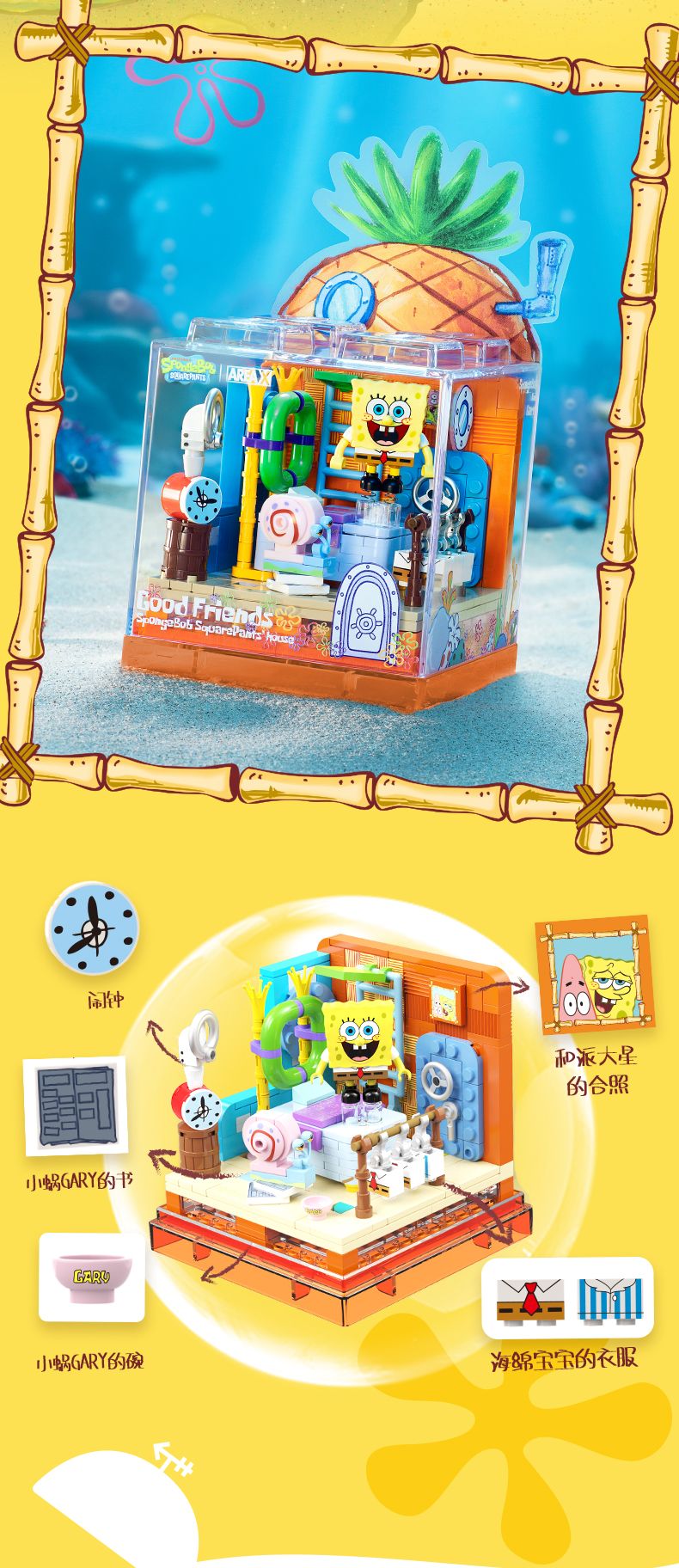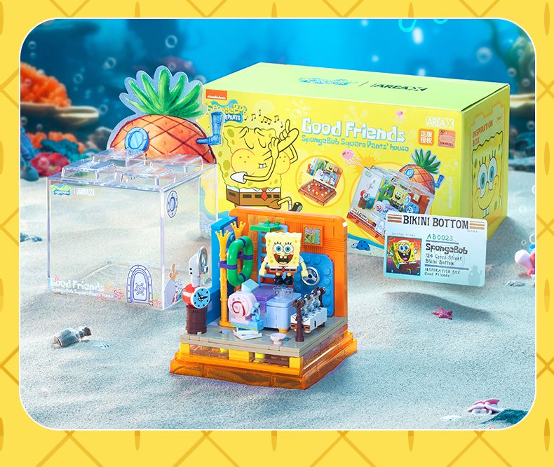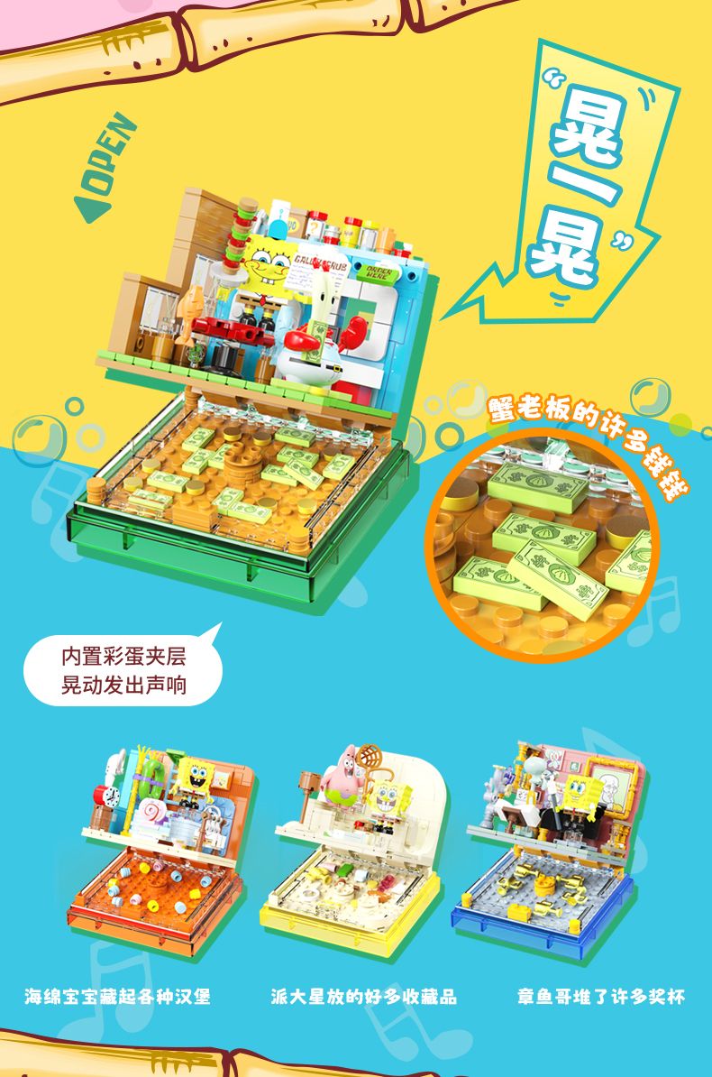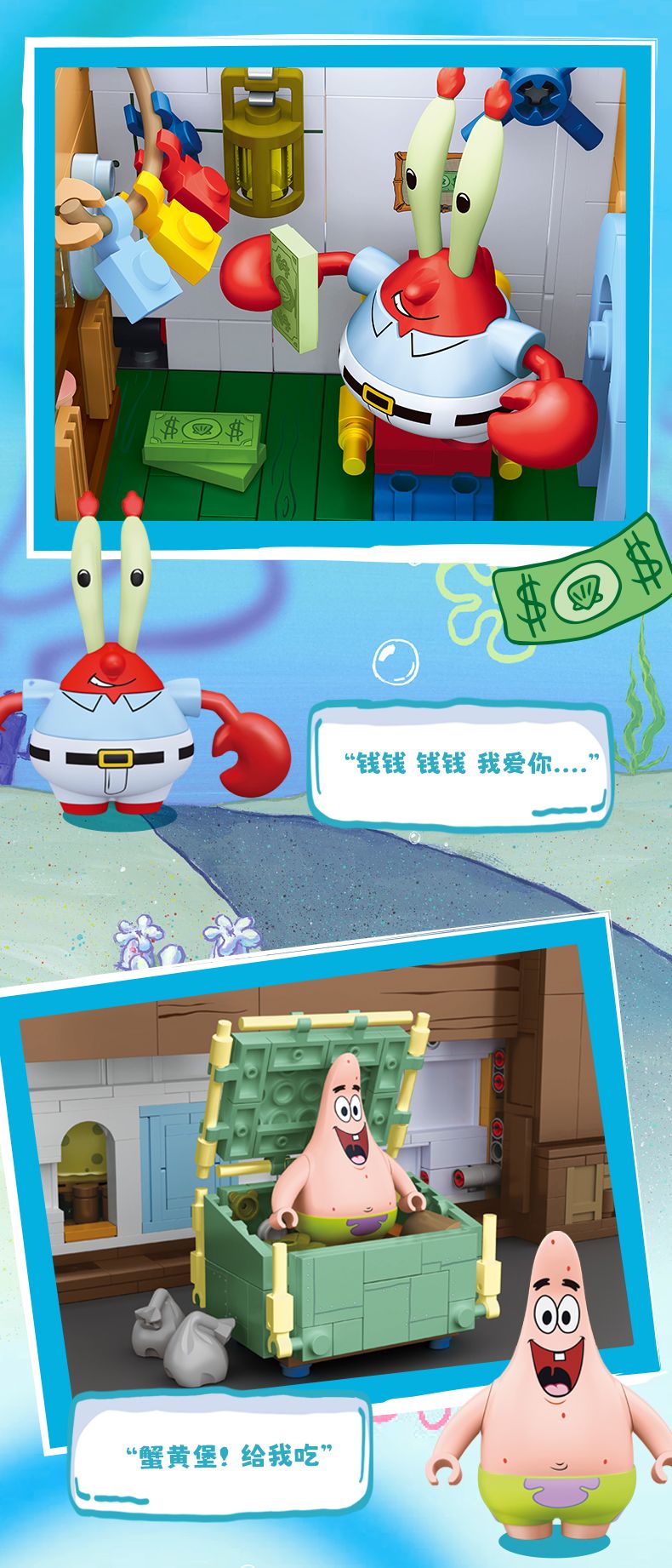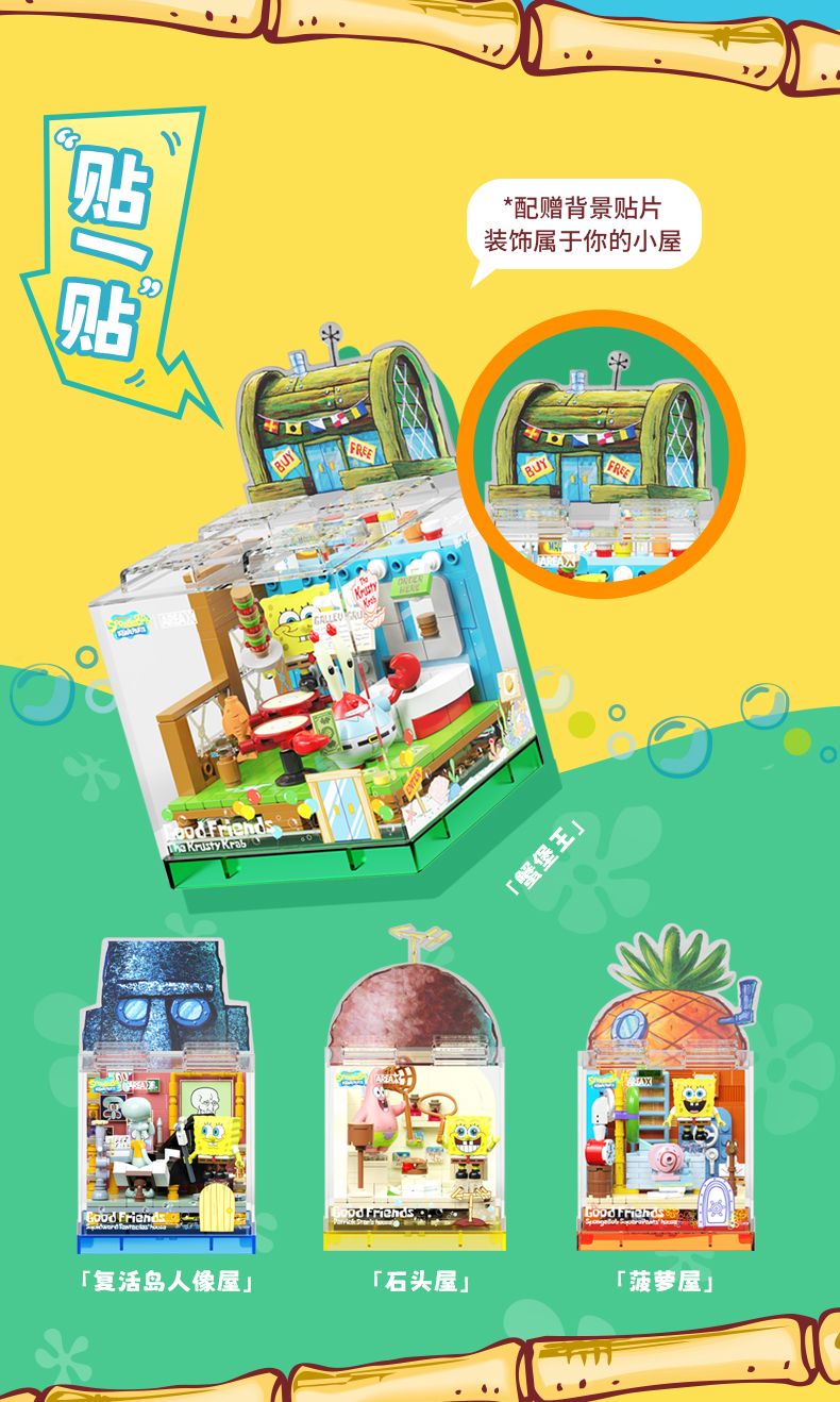 AREAX 네모바지 스폰지밥 집게사장 레스토랑 고품질 중국레고 조립 블럭