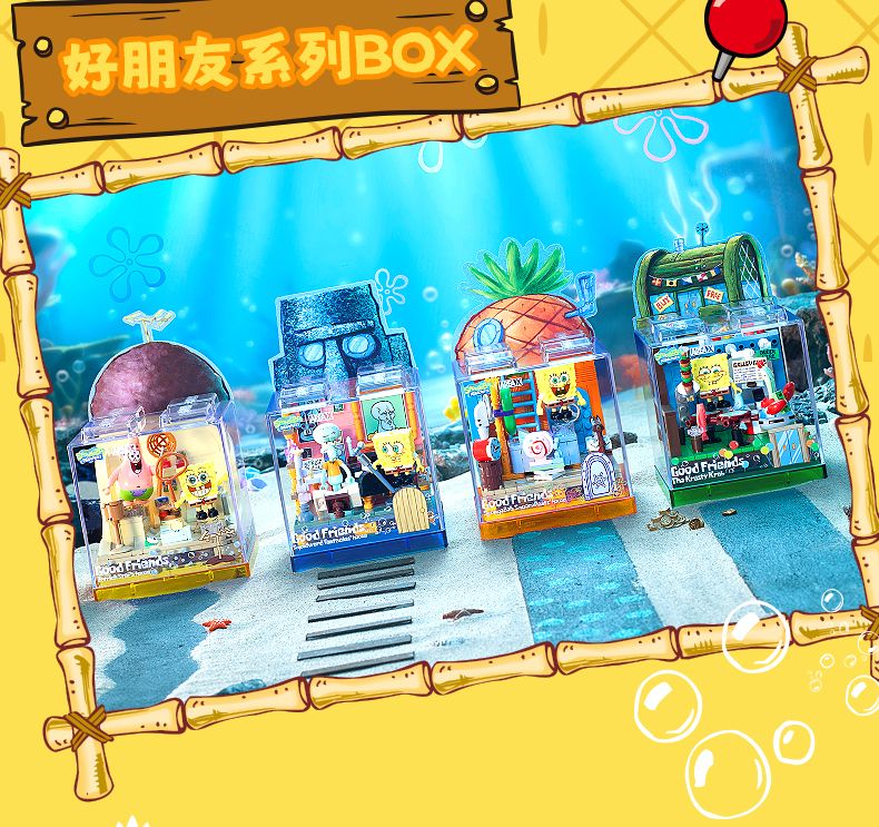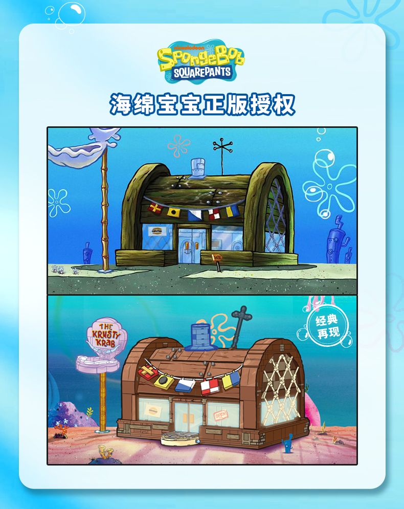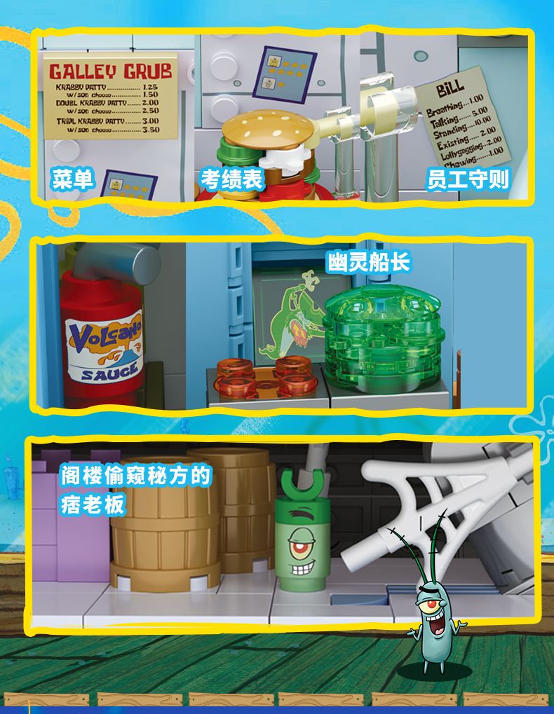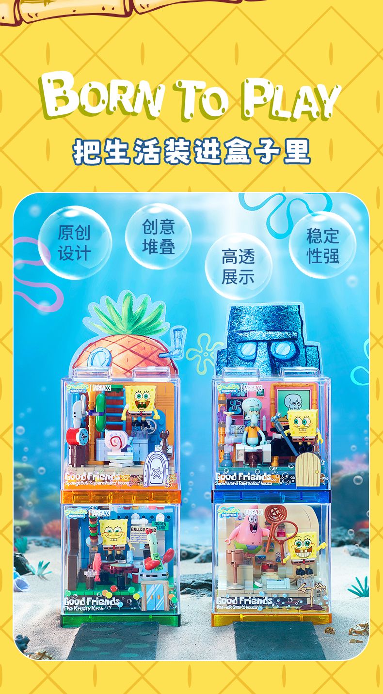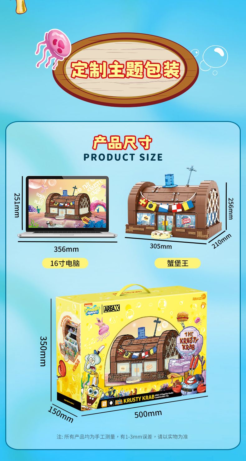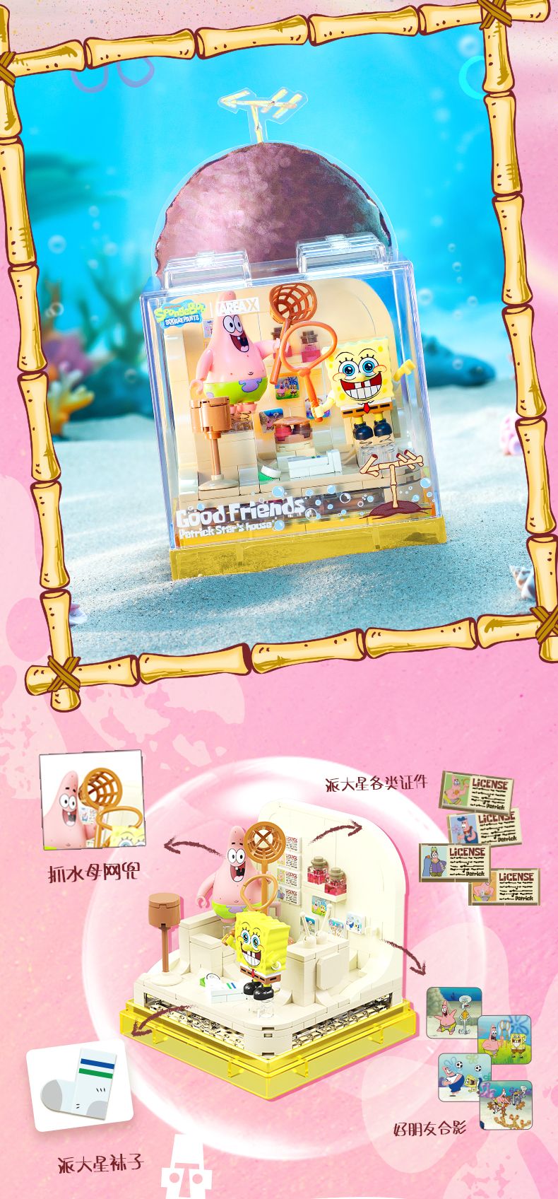 AREAX 네모바지 스폰지밥 집게사장 레스토랑 고품질 중국레고 조립 블럭